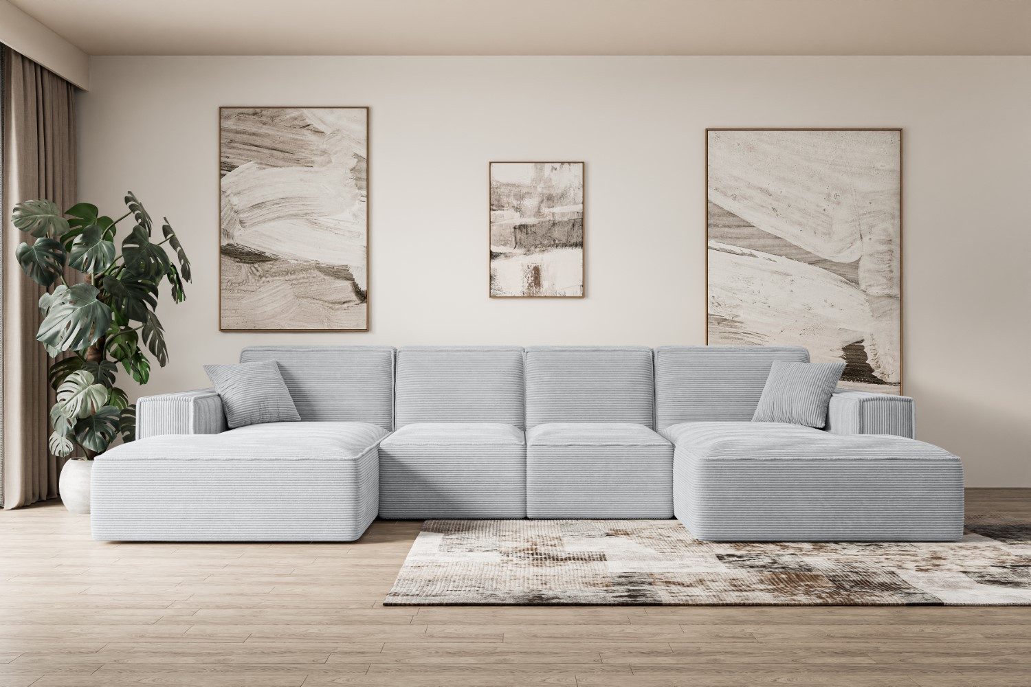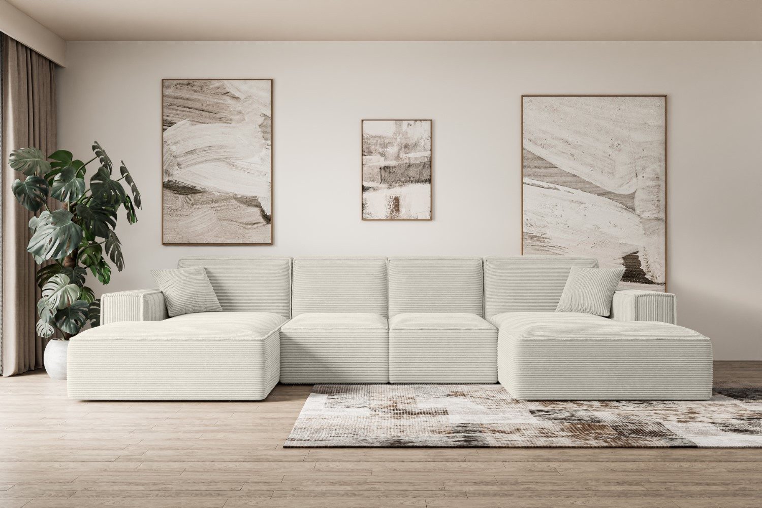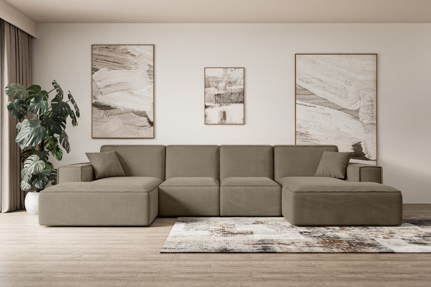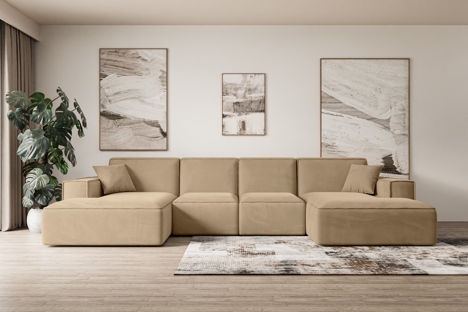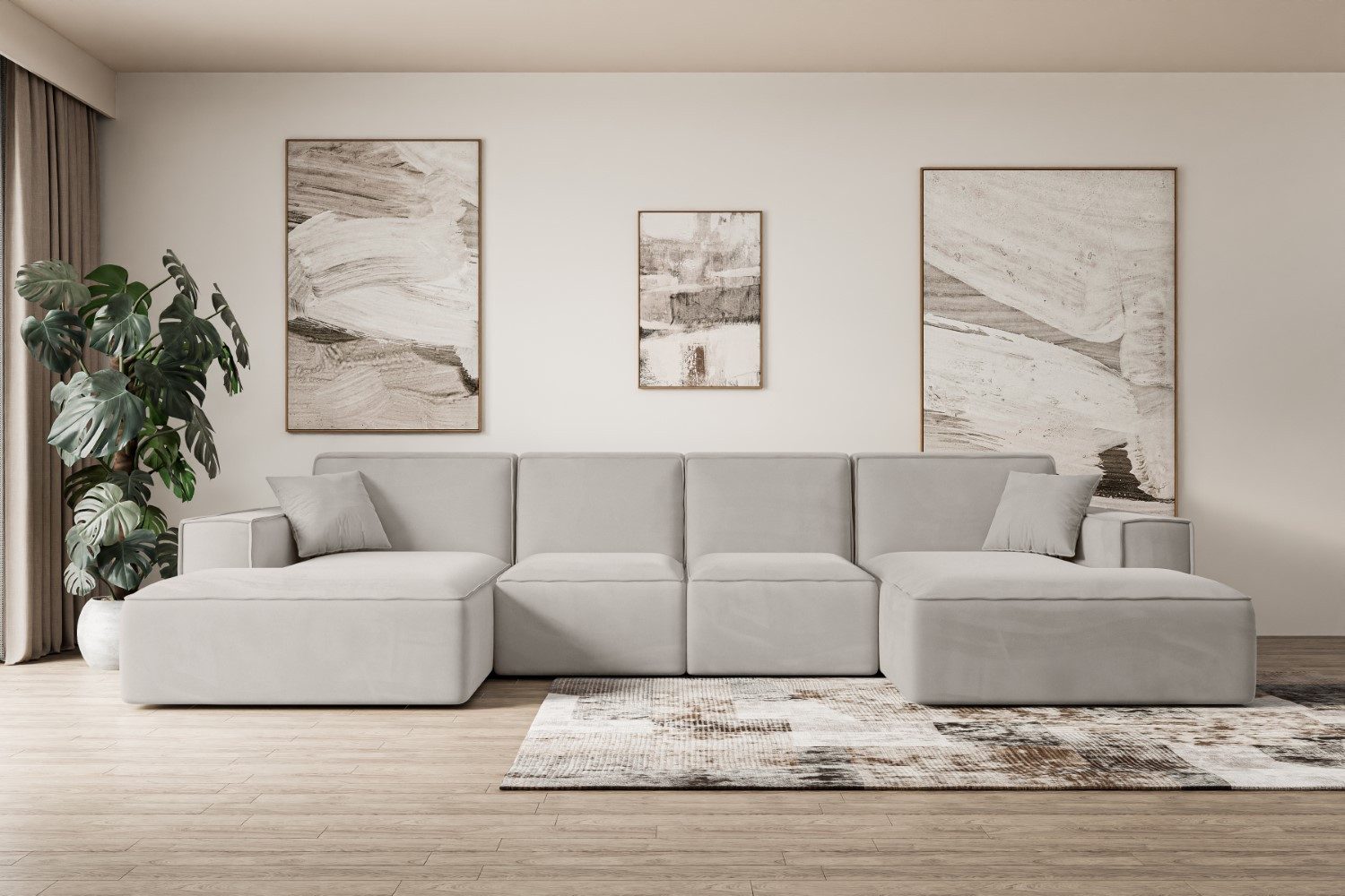 Das moderne Polstersofa ist ein universelles Möbelstück. Das Schlafsofa in U-Form bietet einen hohen Sitz-, Liege- und Schlafkomfort in jeder Situation.
