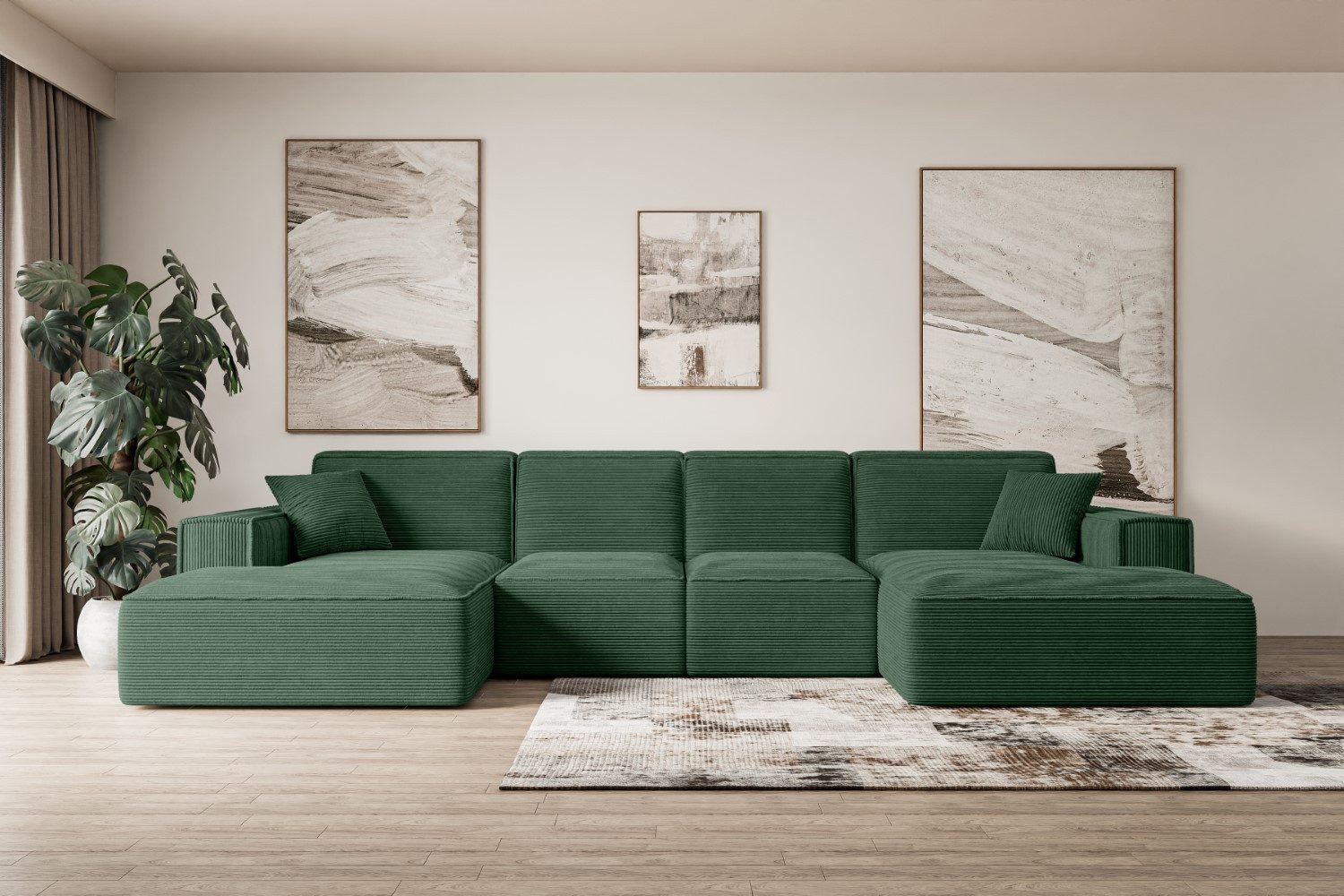 Dieses Ecksofa vereint zeitloses Design mit höchstem Sitzkomfort. Die hochwertige Polsterung sorgt für eine angenehme Unterstützung und lädt zum Entspannen ein. Dank der robusten Konstruktion und sorgfältig ausgewählten Materialien überzeugt das Sofa durch Langlebigkeit und Stabilität. Die harmonische Farbauswahl und das elegante Design fügen sich perfekt in verschiedene Wohnstile ein und setzen stilvolle Akzente im Wohnbereich.