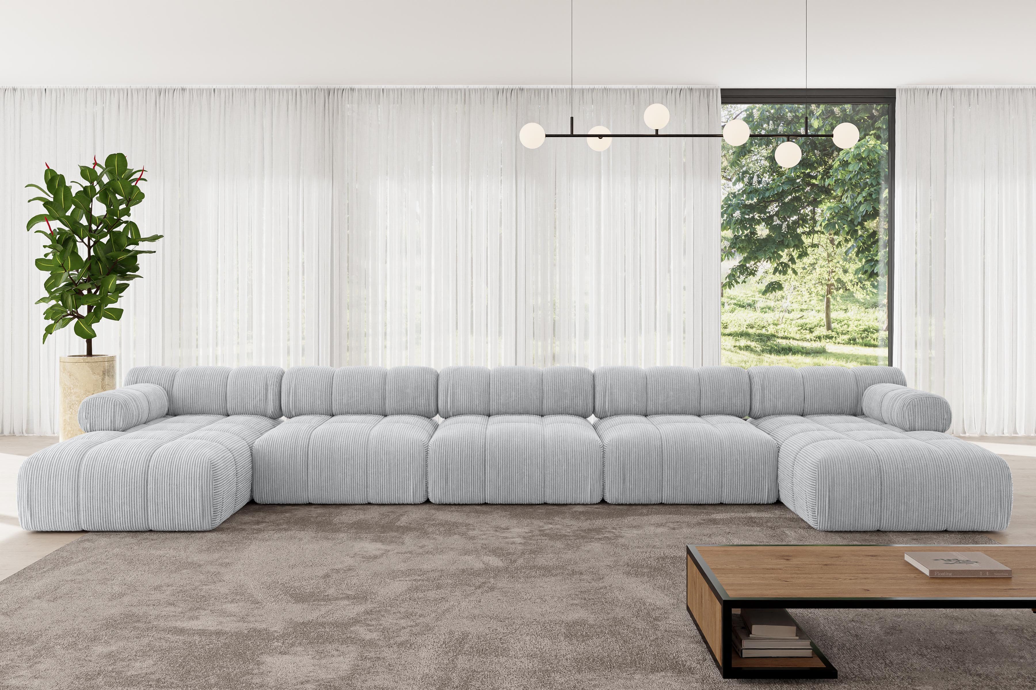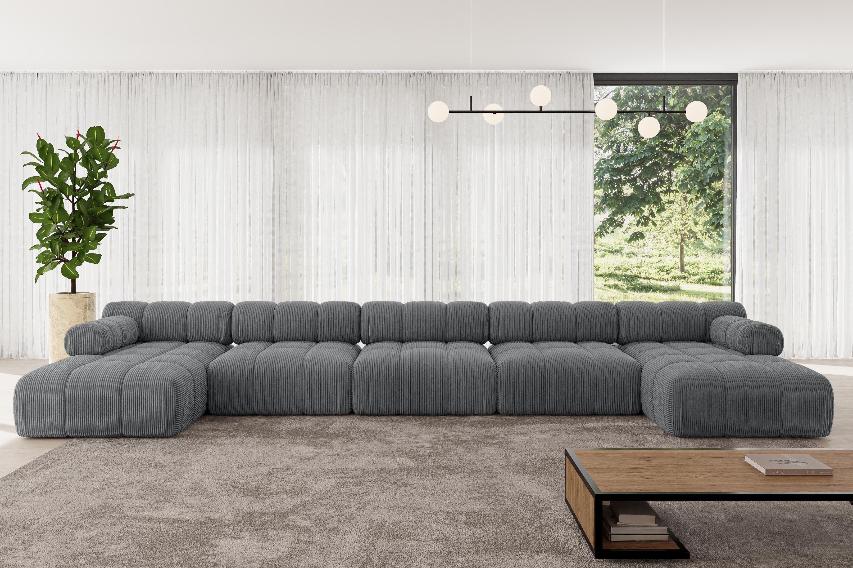 Ein modernes, modular Sofa in U-Form ist ein vielseitiges Möbelstück, das in jeder Alltagssituation außergewöhnlichen Sitzkomfort bietet.