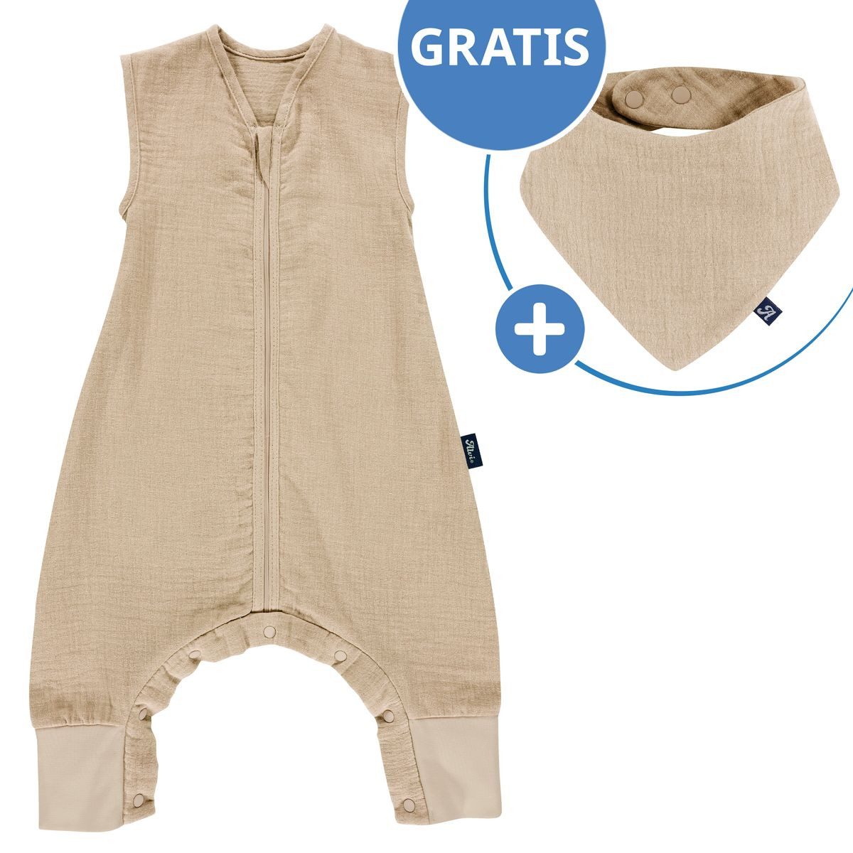 Lieferumfang | ALVI Sommer-Schlafsack mit Füßen Musselin / Sleep-Overall Light Mull / Jumper – Beige - Gr. 70 cm ALVI Dreieckstuch –Beige |