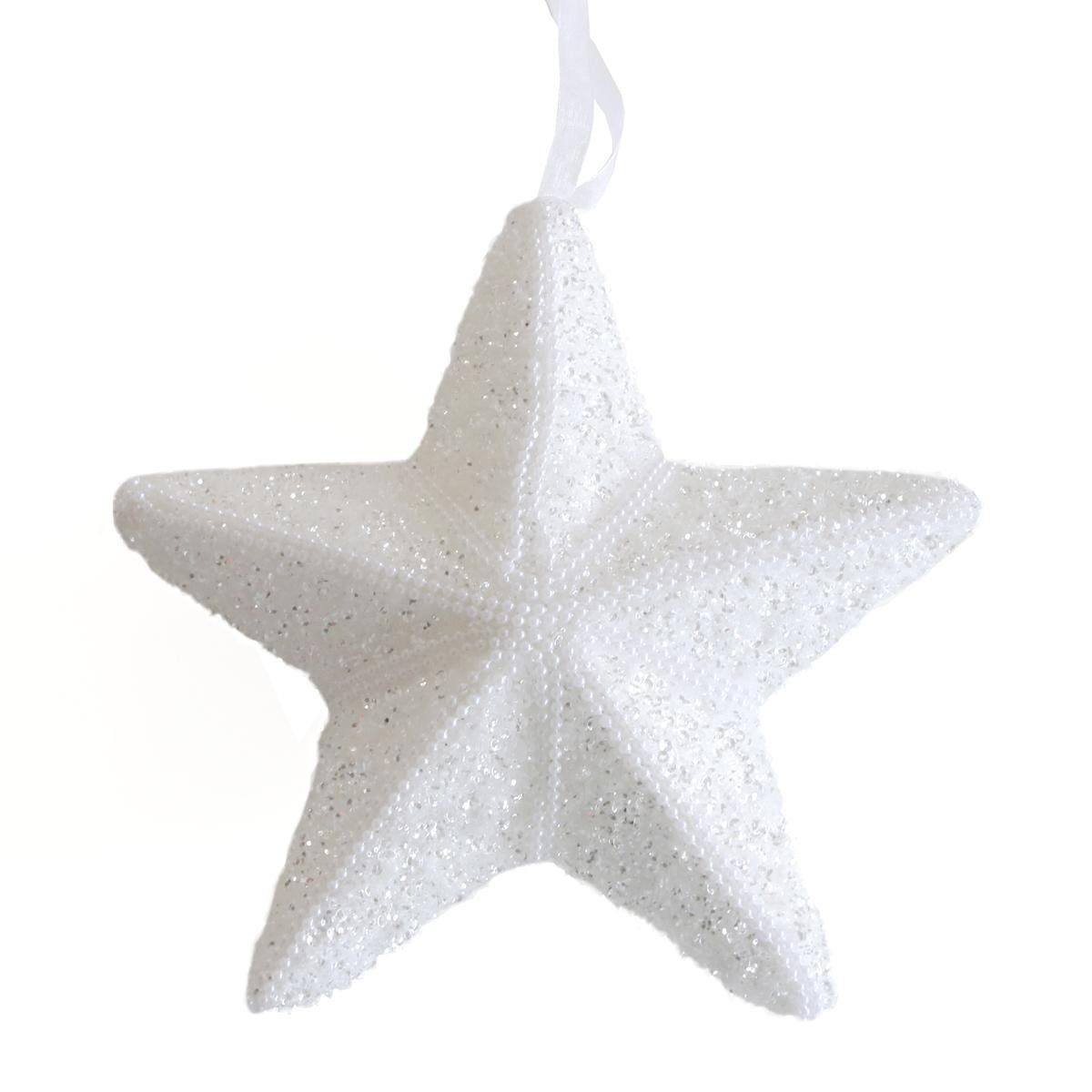 AM-Design Stern weiß Glimmer, mit Kunststoff-Perlen, D ca. 22 cm Der leichtgewichtige Stern strahlt über und über in hellem Weiß. Versehen mit Glitzersteinchen. die kristallähnlich anmuten und mit Perlenbänder gesäumten Kanten wirkt er durch seine plastische Tiefe einfach himmlisch. An der Tannenspitze oder am Fenster aufgehängt ein richtiges Highlight. Produktdetails AM-Design Stern weiß Glimmer, mit Perlen, D ca. 22 cm: Material: Styropor, Kunststoff Maße: ca. 22 cm D x 7 cm T Dieses Angebot gilt für ein Stück AM-Design Stern weiß Glimmer, mit Kunststoff-Perlen, D ca. 22 cm - Artikel AM-97333, ohne Deko oder sonstigem Zubehör.