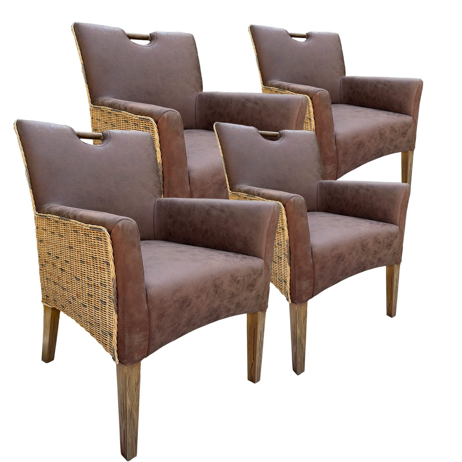 Der Rattanstuhl Set Darwin besticht durch sein Geflecht aus sorgfältig verarbeitetem Naturrattan, das für seine Langlebigkeit und Flexibilität bekannt ist. Die harmonisch geschwungenen Formen des Geflechts verleihen jedem Raum eine luftige, entspannte Atmosphäre. Das Gestell, die Beine und der Griff des Stuhls bestehen aus massivem Mangoholz, das nicht nur Stabilität und Haltbarkeit bietet, sondern auch durch seine natürliche Maserung jedes Stück zu einem Unikat macht. Der Griff an der Rückenlehne sorgt dafür, dass sich die Stühle einfach bewegen lassen. Der Bezug des Polsterstuhls besteht aus Mikrofaser in der trendigen Farbe muskat. Diese edle Farbnuance sorgt für einen modernen Akzent und fügt sich mühelos in verschiedene Wohnstile ein – egal, ob klassisch, skandinavisch oder bohemian. Die Mikrofaser-Polsterung sorgt nicht nur für einen angenehmen Sitzkomfort, sondern ist auch pflegeleicht und langlebig, perfekt für den Alltag.