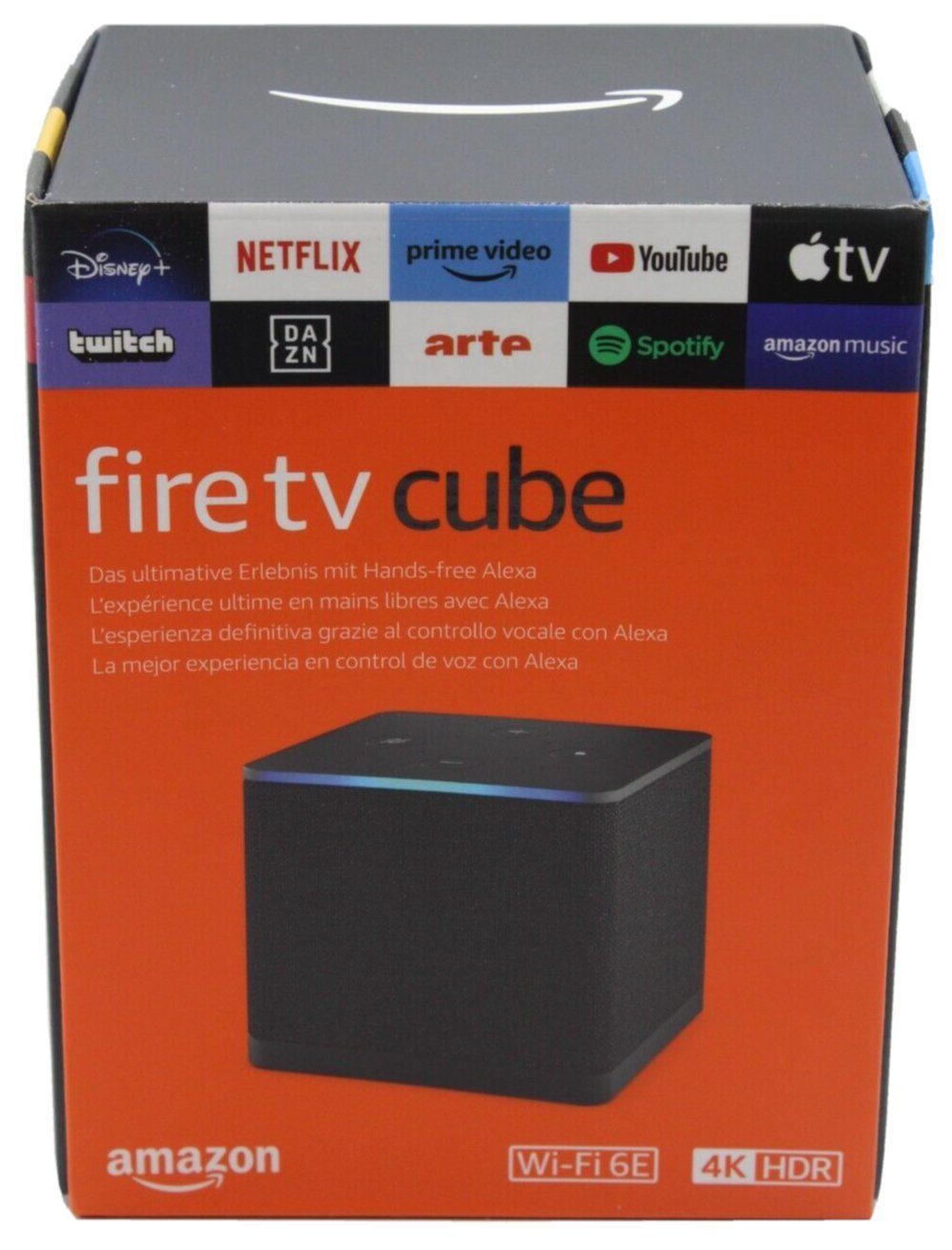 Lieferumfang | Fire TV Cube (3. Gen.) Alexa-Sprachfernbedienung für Fire TV Netzteil 2 AAA-Batterien Kurzanleitung |