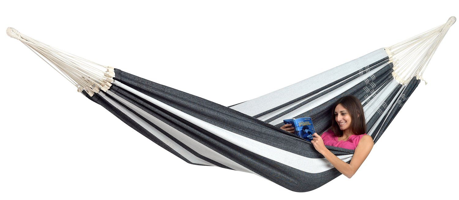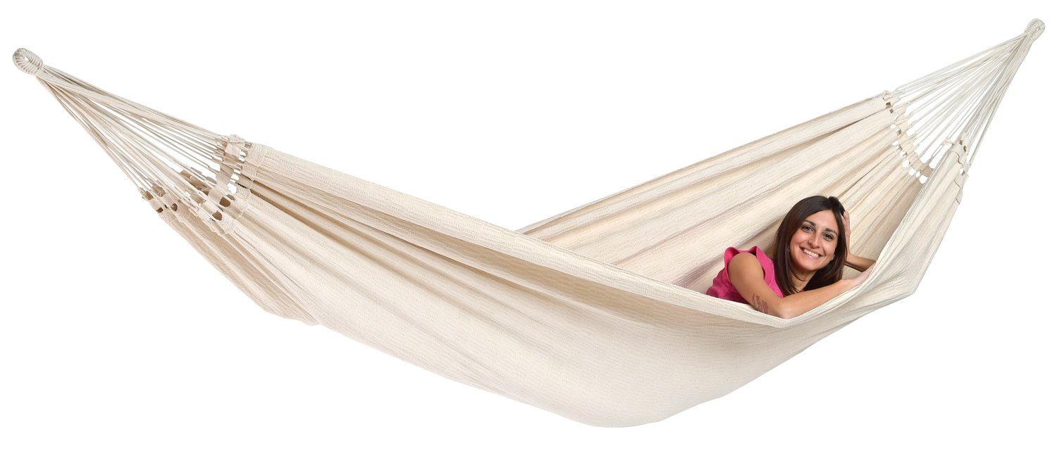Die brasilianische XXL Hängematte Paradiso von Amazonas entsteht durch Handarbeit in Brasilien unter fairen Bedingungen und vermittelt allein beim Anblick südamerikanische, sonnige Stimmung. Die Tuchhängematte, gefertigt aus recycelter Baumwolle*, erfreut sich großer Beliebtheit aufgrund ihres festen Gewebes, ihrer Robustheit und gleichzeitig außerordentlichen Weichheit und Anschmiegsamkeit, die für maximalen Liegekomfort sorgen. Dies schafft eine entspannte und kuschelige Wohlfühlatmosphäre in der Hängematte. Zahlreiche Aufhängeschnüre erzeugen ein Gefühl der Schwerelosigkeit und verteilen das Gewicht gleichmäßig innerhalb der XXL Hängematte. Mit einer großzügigen Liegefläche von 175 cm x 200 cm und einer Belastbarkeit von 200 kg bietet die Hängematte maximale Entspannung für bis zu 3 Personen. Ein absolutes Muss für jeden, sei es im Urlaub oder zu Hause. Das Gefühl von Schwerelosigkeit und Geborgenheit entspannt den Körper im Alltag, lädt die Akkus wieder auf und fördert die Gesundheit.