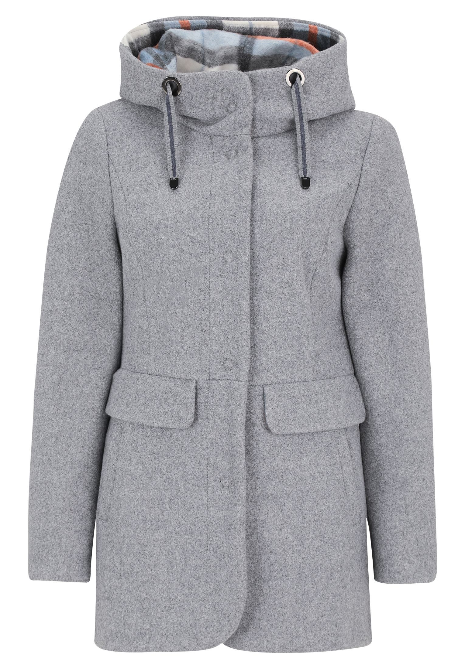 Die AMBER & JUNE Winterjacke vereint feminine Eleganz mit praktischer Funktionalität. Durch die taillierte Passform entsteht eine schöne Silhouette, während die nicht abnehmbare Kapuze zuverlässigen Schutz an kalten Tagen bietet. Ein verdeckter Verschluss mit Druckknöpfen sorgt für ein cleanes Design, während Paspeltaschen das Modell abrunden. Die hochwertige Materialmischung mit Woll-Anteil hält dich angenehm warm und verleiht der Jacke einen edlen Look.