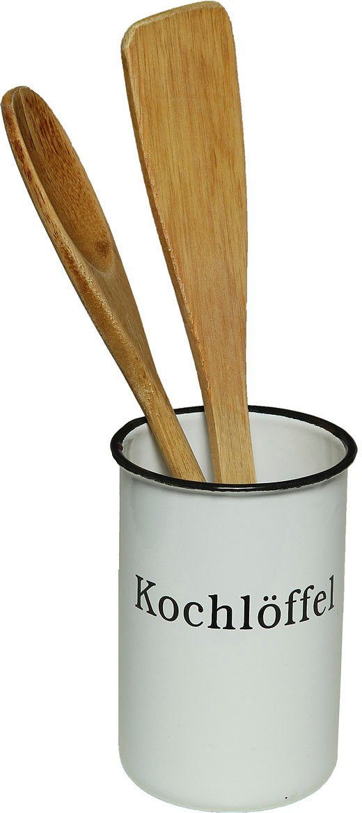 Mit diesem dekorativen Kochlöffeltopf aus Emaille schaffen Sie ein besonderes Ambiente in Ihrem Zuhause. Der Löffeltopf bietet die perfekte Aufbewahrungslösung für Ihre Holzlöffel und ist zudem noch ein richtiger Hingucker in Ihrer Landhausküche. Der dekorative Topf wurde sorgfältig aus starkem Stahlblech gefertigt. Die originale Emaillebeschichtung wird entsprechend dem schon seit Jahrhunderten gebräulichen Verfahren hergestellt. Während dieses Herstellungsprozesses entstehen die kleinen Luftblasen und Abplatzungen in der Emaillebeschichtung - beides wesentliche Schlüsselmerkmale bei Produkten aus Emaille. Das Emaillierungsverfahren zum Schmelzen des Pulverglases auf Metall bei ungefähr 800 Grad wurde erstmals im 18. Jahrhundert angewendet. Der weiße Löffeltopf ist klassisch mit der für Emaille typischen feinen, schwarzen Linie an den Rändern versehen. Unser schöner Löffeltopf aus Emaille eignet sich auch hervorragend als Geschenkidee. Kombiniert mit einigen Holzkochlöffeln... - Sie haben das perfekte Geschenk. Innenmaß: 11,5 x 7 cm - Fassungsvermögen: 0,5 Liter.