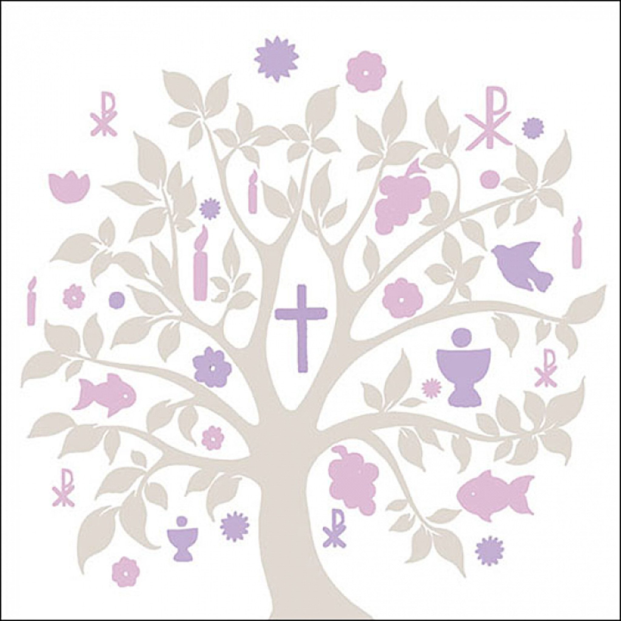 Einweg Papierservietten / Lunchservietten / Partyservietten mit Motiv - Baum des Lebens & christliche Symbole Material: Tissue - Papier, FSC zertifiziert - Größe: ca. 33 x 33 cm (entfaltet) bzw. 16,5 x 16,5 cm (gefaltet) - Faltung: 1/4 Falz - Inhalt: 20 Servietten - Farbe: weiß - taupe - rosa - lila - 3-lagig, saugfähig, weich & hautfreundlich - Aus hochwertigem Qualitätstissue, in der EU hergestellt - Chlorfrei gebleicht, Premium Serviettendruck mit Farben auf Wasserbasis - Umweltfreundlich, recyclebar & nachhaltig, aus erneuerbaren Quellen - Die Verpackungsfolie besteht aus recyclebarem PP Unsere hochwertigen Servietten mit religiösem Symbolmotiv sind ideal für feierliche Anlässe mit kirchlichem Hintergrund. Das Design zeigt den Baum des Lebens mit christlichen Symbolen wie Kreuz, Kelch, Fisch und Taube in dezenten Pastelltönen auf weißem Grund. Diese Einwegservietten sind vielseitig einsetzbar und eignen sich perfekt für Kommunion, Konfirmation, Taufe oder andere festliche Momente mit religiösem Bezug. Hergestellt aus FSC-zertifiziertem Papier, sind unsere Zellstoffservietten umweltfreundlich, nachhaltig und bieten höchste Qualität. Auch für kreative Bastelarbeiten wie Serviettentechnik oder Decoupage sind die Motivservietten hervorragend geeignet. Muster & Motiv: Lebensbaum, Baum des Lebens, Kreuz, Fisch, Kelch, Taube, religiöse Symbole, Religion, Christentum, Glaube, Kirche - Anlässe & Saison: Taufe, Erstkommunion, Kommunion, Konfirmation, Firmung, religiöse Feste, kirchliche Feiern - Stil & Aufmachung: schlicht, elegant, dezent, modern, symbolisch, religiös, christlich