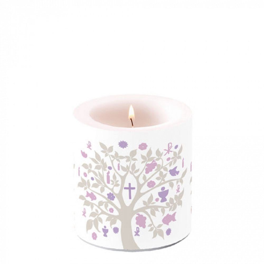 Material | Paraffin Kerze Kommunion Kruz Symbole Taupe / Konfirmation / Taufe |