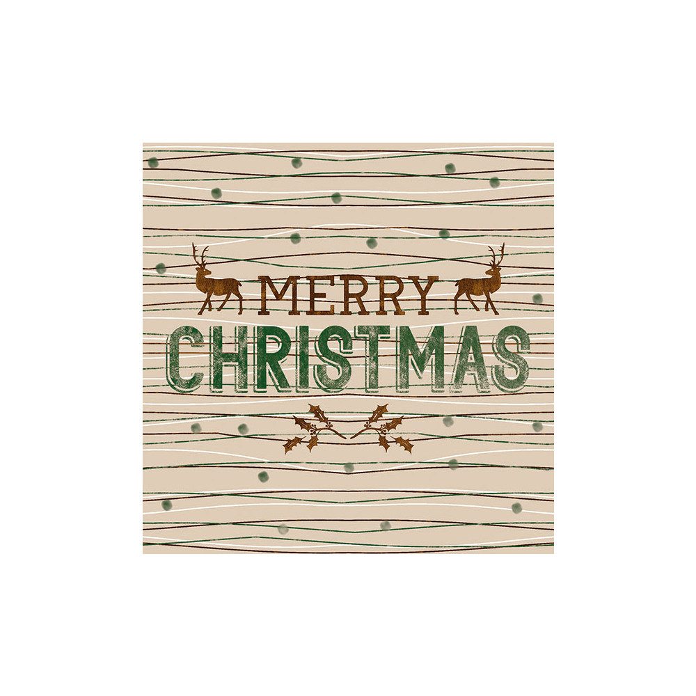 Serviette 'Classy Christmas', viertel Motiv mit beigen Hintergrund und dem Spruch 'Merry Christmas' in Braun und Grün mit zwei Hirschen. Ideal für die festliche Weihnachtsdekoration auf dem Tisch oder für Keilrahmen, Holzschilder, Boxen und Tabletts.