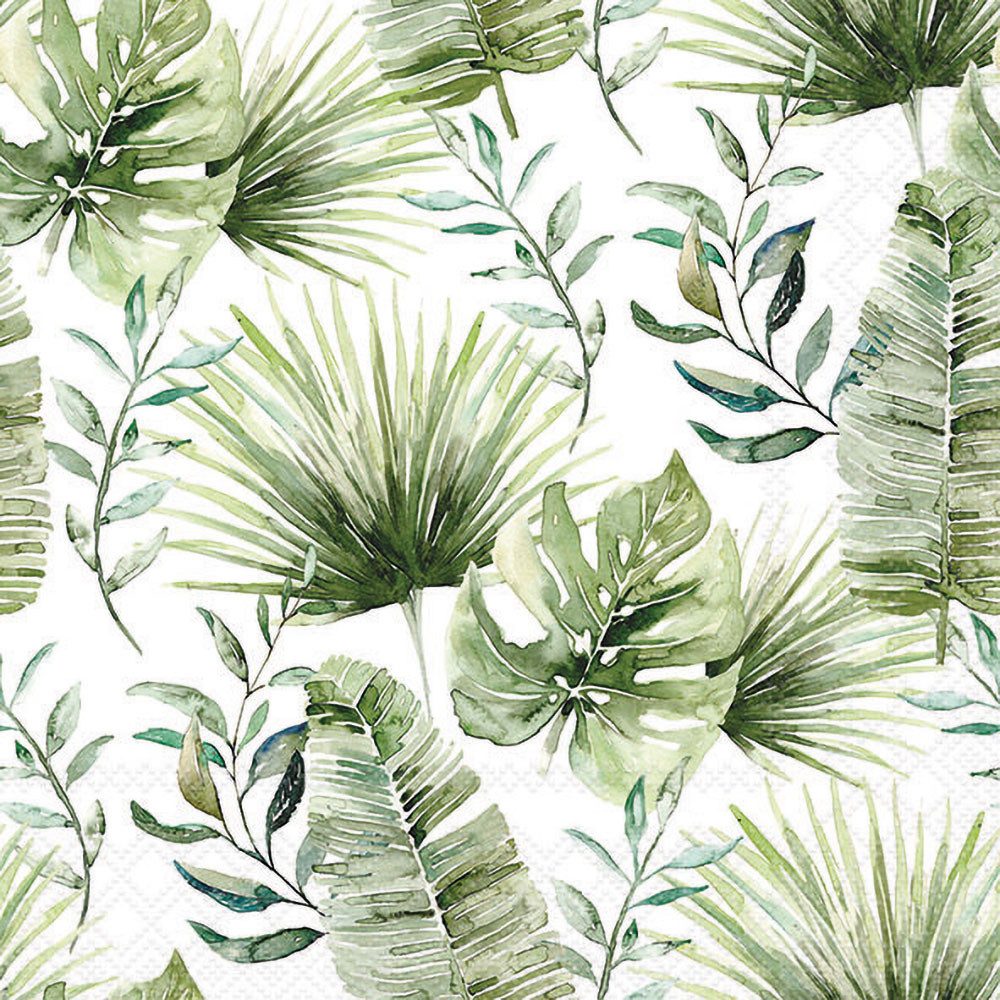 Entdecke die faszinierende Welt des Dschungels mit den Servietten 'Jungle Leaves, white'. Das lebhafte Design zeigt die Blätter verschiedener Dschungelpflanzen und bringt so einen Hauch von üppigem Grün in dein Zuhause. Mit den Maßen von 33 x 33 cm sind diese Sommer-Servietten perfekt für kreative Projekte mit der Serviettentechnik geeignet. Verschönere Alltagsgegenstände wie Bilderrahmen oder Blumentöpfe und verwandle sie in einzigartige Kunstwerke. Die leuchtenden Jungle-Blätter schaffen eine tropische Atmosphäre und verleihen deinen Kreationen ein stilvolles Finish. Bestelle noch heute und genieße den Sommer mit diesen vielseitigen, schmuckvollen Servietten!