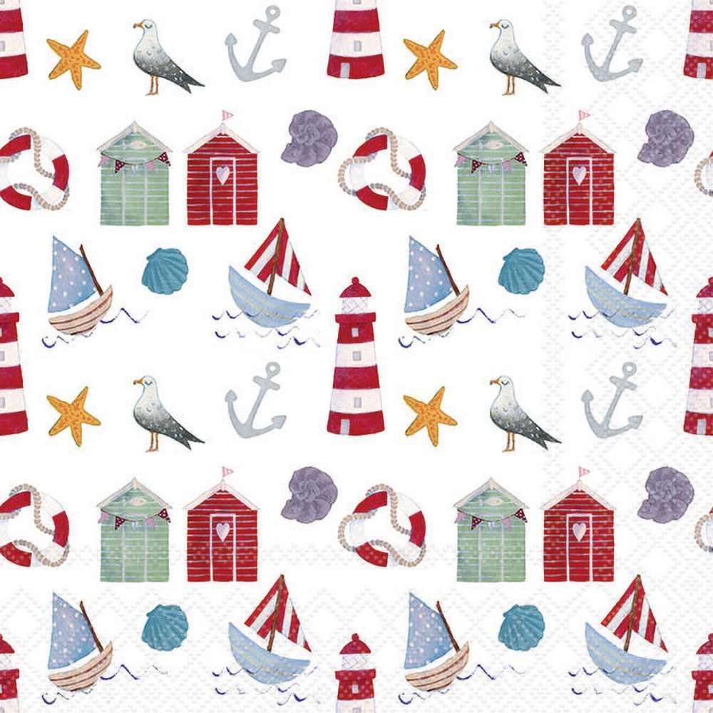 Entdecke die bezaubernde Serviette 'Nautical' und bring den Sommer in dein Zuhause. Mit Motiven von Strandhäusern, Rettungsringen und Möwen in bunten Farben verwandelst du Alltägliches in maritime Eyecatcher. Ideal für die Serviettentechnik: Übertrage das lebendige Design mit Serviettenlack auf Holzboxen oder Stofftaschen. Gestalte so einzigartige Dekorationen mit einer Размер von 33 x 33 cm pro Serviette. Jede Packung enthält 20 Exemplare, sodass dir zahlreiche kreative Projekte bevorstehen. Lass dich von der viertel Motiv-Einteilung inspirieren und tauche ein in die sommerliche Welt der Seesterne, Segelboote und Anker. Perfekt, um deinen Bastelprojekten einen Hauch von Meeresbrise zu verleihen.