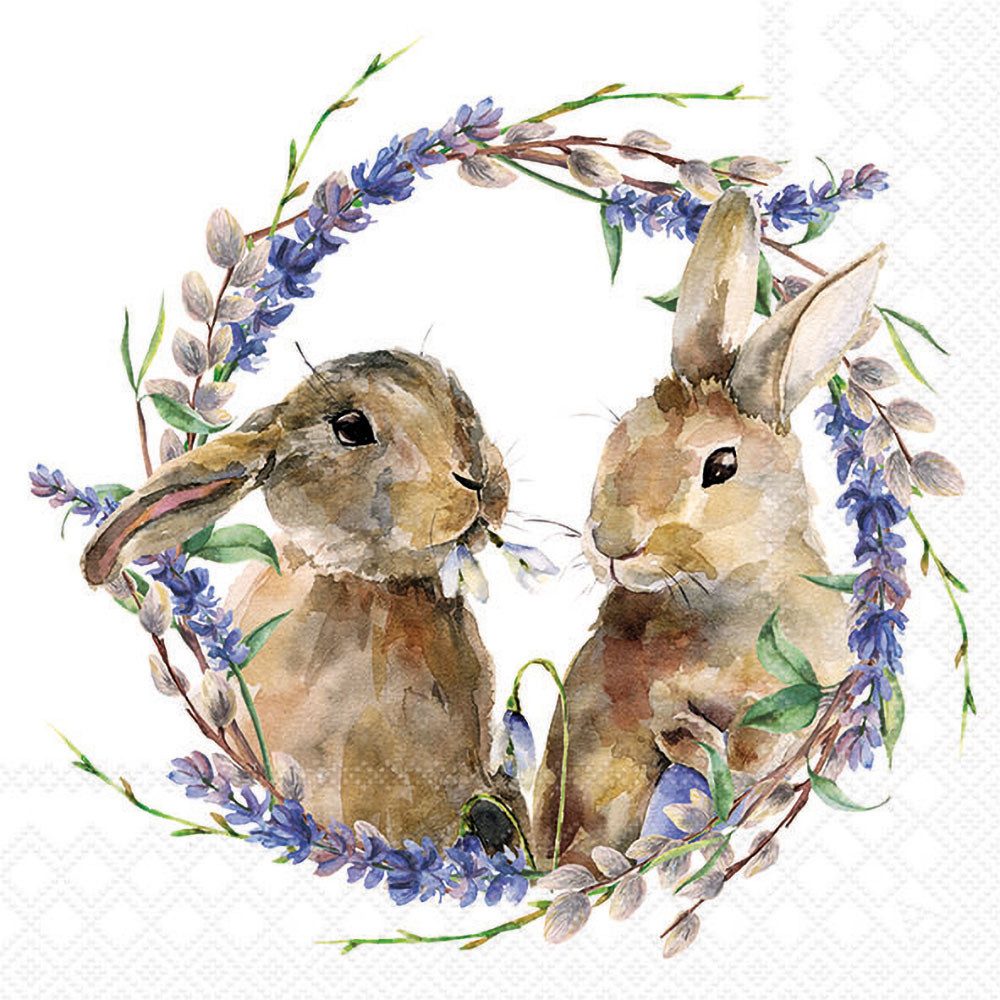 Bereite dich auf ein kreatives Oster-Erlebnis mit der Serviette 'Zwei Hasen im Kranz' vor. Das bezaubernde Motiv mit zwei niedlichen Hasen, umgeben von einem Kranz aus blauen Blüten, bringt frühlingshafte Atmosphäre in dein Zuhause. Mit einer Размер von 33 x 33 cm und 20 Stück im Set kannst du vielseitige Designprojekte realisieren. Verwende die Serviettentechnik, um aus schlichten Holzschachteln oder Stoffkissen individuelle Kunstwerke zu gestalten. Durch den Serviettenlack lässt sich das romantische Osterdesign einfach auf zahlreiche Oberflächen übertragen. Bestelle jetzt und verzaubere deinen Wohnraum mit einem Hauch von Frühling!