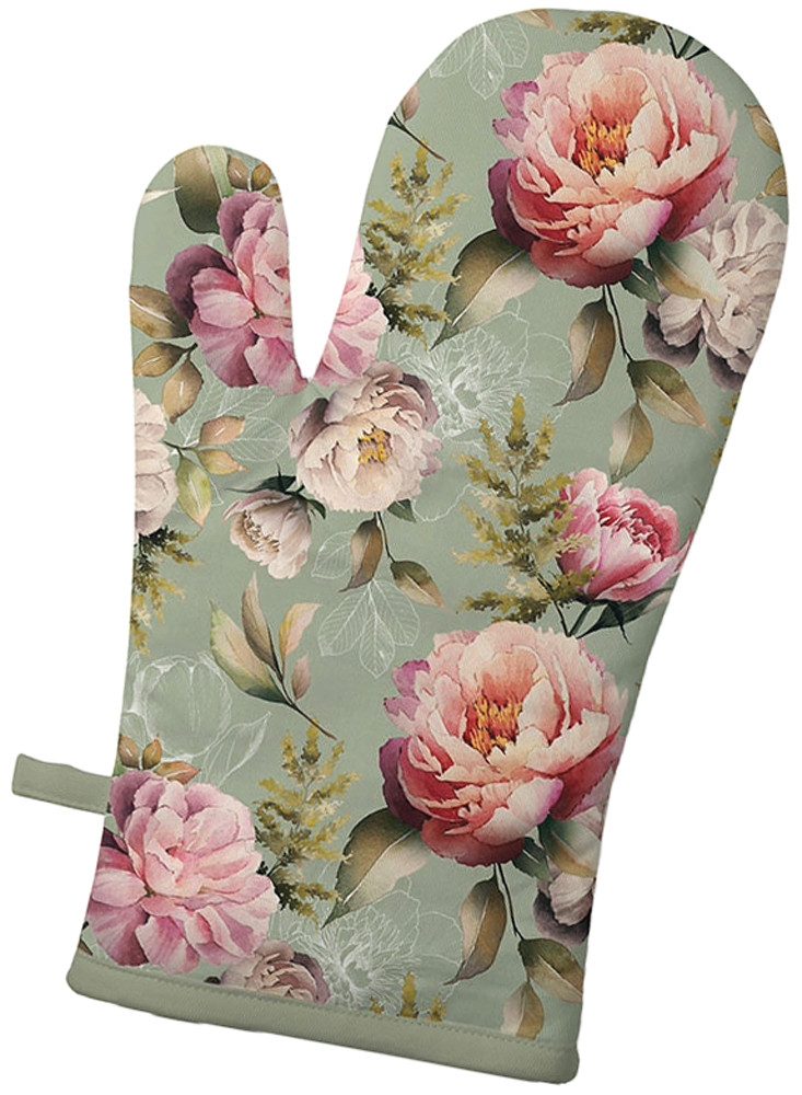 Bringen Sie natürliche Eleganz und frühlingshafte Frische in Ihre Küche mit diesem wunderschönen Ofenhandschuh im Pfingstrosen-Design. Der Ofenhandschuh besticht durch einen grünen Hintergrund, der mit prächtigen Pfingstrosen in Rosa- und Lilatönen verziert ist. Dieses harmonische und elegante Design bringt einen Hauch von Gartenromantik in Ihre Küche.