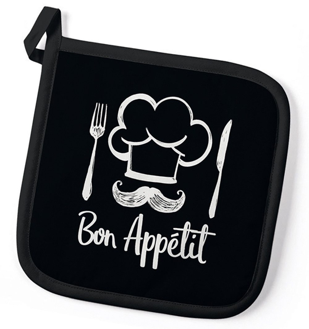 Verleihen Sie Ihrer Küche einen stilvollen und einladenden Touch mit diesem charmanten Topflappen im Bon Appétit-Design. Der Topflappen ist mit einem stilvollen Schriftzug Bon Appétit und einer dekorativen Kochmütze versehen. Dieses schlichte, aber elegante Design bringt eine professionelle und zugleich gemütliche Atmosphäre in Ihre Küche.