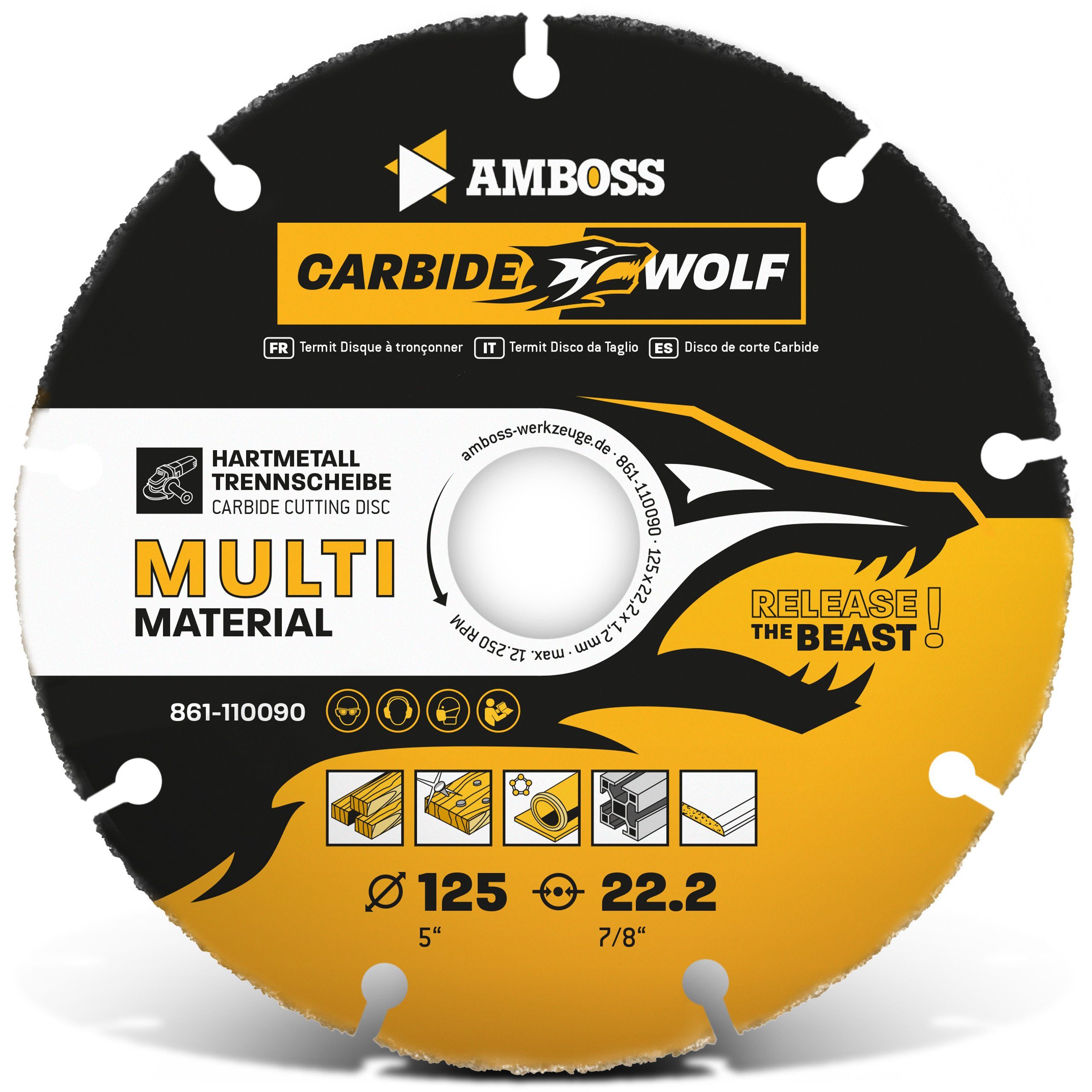 • SICHERHEIT: Die Carbide Wolf Trennscheibe ermöglicht rückschlagfreies Arbeiten. Hohe Sicherheitsstandards sind für Amboss Werkzeuge selbstverständlich, schließlich geht es um Dich
