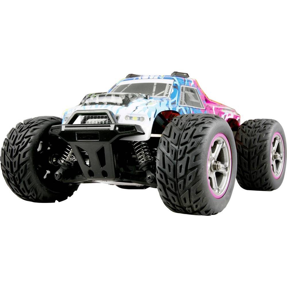 Ausstattung | Altersklasse: ab 14 Jahre · Antriebsart (Modellbau): Allradantrieb (4WD) · Ausführung (allgemein): Monstertruck · Bodenfreiheit: 17 mm · Elektromotor-Art: Brushed · Fahrzeit (Autos): 10 min · Frequenz (Modellbau): 2,4 GHz · Geschwindigkeit (max.): 50 km/h · Gewicht: 524 g · Herstellerfarbe: Blau, Pink · Ladezeit: 150 min · Maßstab: 1:20 · Modell-Art: Monstertruck · Modell-Name: MAX20 · Modellausführung: RtR · Motor-Art (Modellbau): Elektro · Motor-Typ: Brushed 390 · Produktabmessung, Breite: 152 mm · Produktabmessung, Höhe: 80 mm · Produktabmessung, Длина: 210 mm · Radstand (Details): 135 mm · Reifen-Breite (Details): 30 mm · Reifen-Durchmesser: 60 mm · Reifen-Durchmesser hinten: 60 mm · Spurbreite (Details): 115 mm · Впередe technische Daten: Felgendurchmesser: 35mm Getriebe: Metall Dämpfer vorne: 42mm Dämpfer hinten: 42mm Bremse: elektronisch Antriebssystem: Kardan Lenkservo: Mini Hauptmaterial: Kunststoff Akkufach Abmessungen: 70x19x18mm Akku: LiPo 2S 7,4V 750mAh Softcase JST/BEC-Stecker, 60x17x17mm, 40g Reichweite: 80 Meter Ladegerät: USB-Balancer Ladegerät Ladezeit: ca. 120-150 Minuten · Zum Betrieb erforderliches Zubehör: 4 Senderakkus, -Batterien (Typ Mignon AA) |