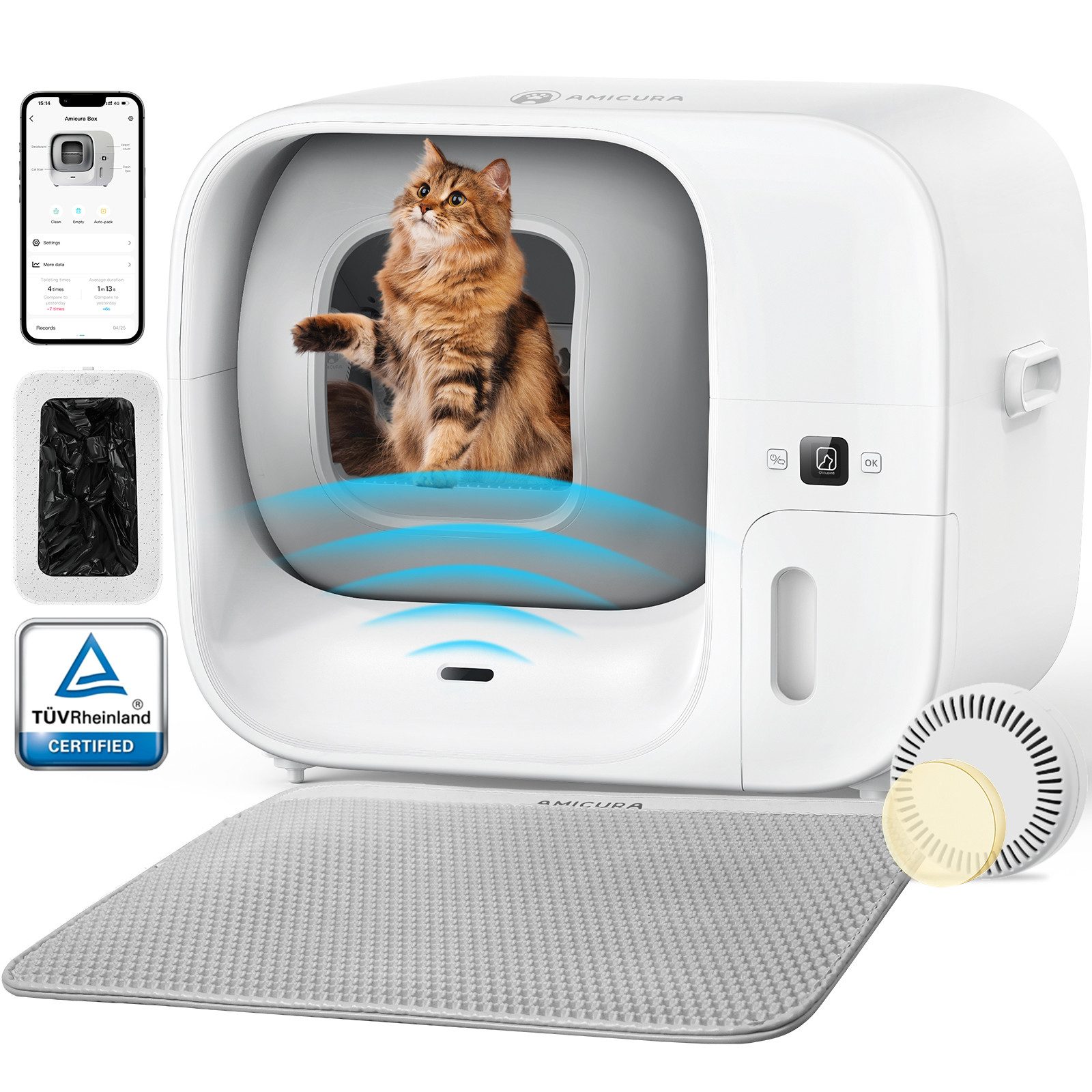Der Cura 3 Katzenklo kann sich automatisch reinigen, selbstschließend abdichten und Beutel automatisch nachfüllen. Er verhindert direkten Kontakt mit Fäkalien, beseitigt Gerüche und Bakterien und hält die Luft frisch. Darüber hinaus genügt ein Druck auf die Leerungstaste in der App, um das gesamte.