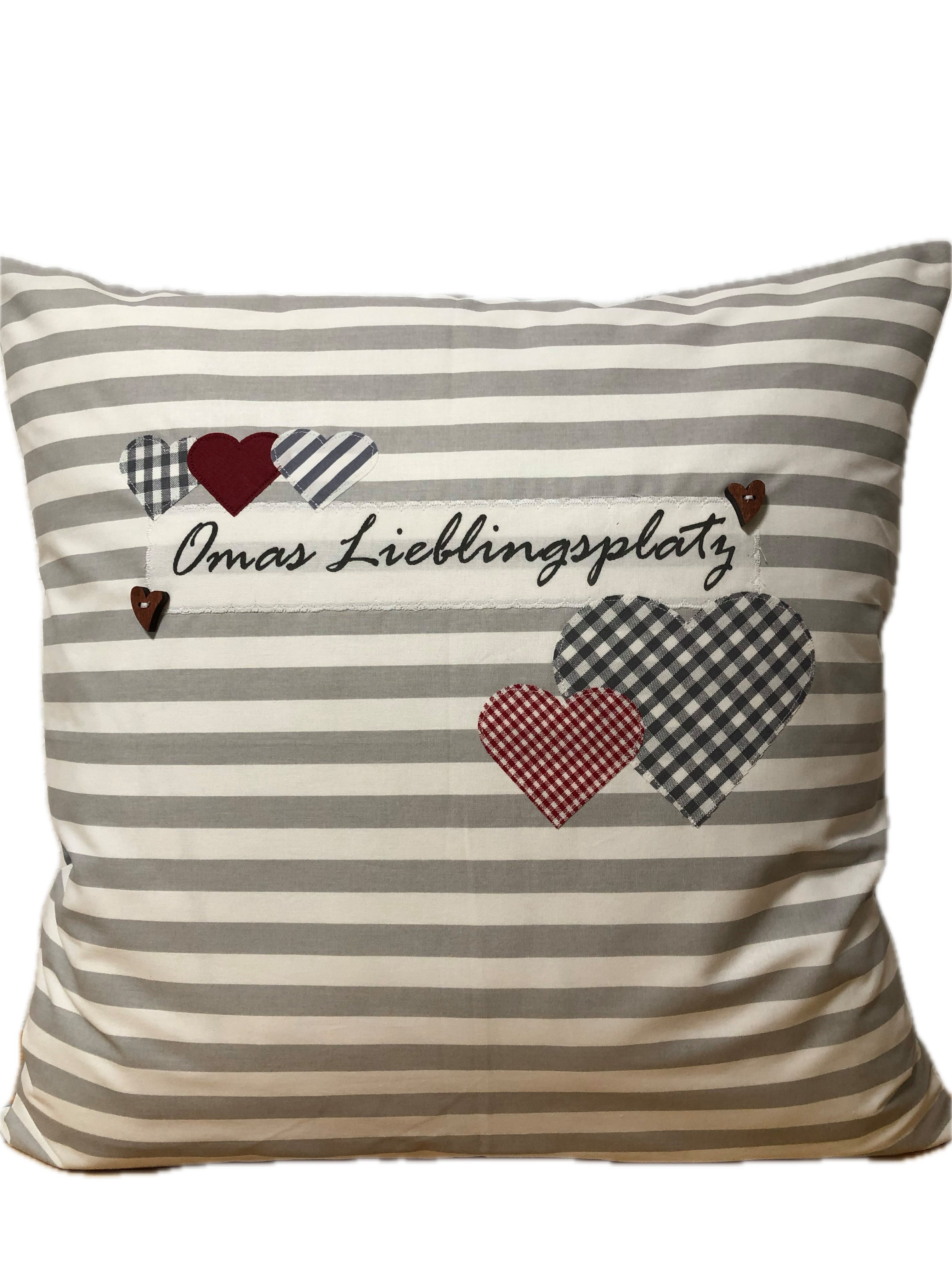 1x Landhausstil Kissenhülle * Kissenbezug *** Omas Lieblingsplatz *** 100 % Handarbeit Grau/weiß gestreift Размер ca. 50x50cm. Artikelmerkmale: 100% Baumwolle Landhaus Design für ein gemütliche Zuhause. Wenn sie sich für einen bestimmten Artikel interessieren und Fragen dazu haben lassen sie es uns einfach wissen. Lieferung ohne Dekoration! HINWEIS: Ihre Bestellung wird individuell für Sie produziert