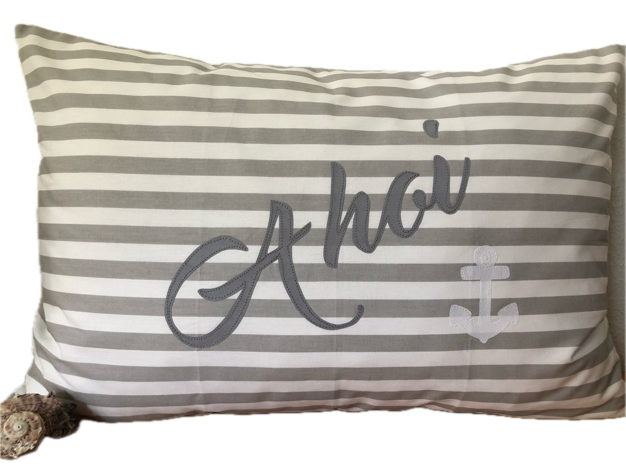 1x Maritime Kissenhülle * Kissenbezug * Ahoi * Grau/weiß gestreift Verschluss. Knopfleiste mit Holzknöpfe 100 % Handarbeit Размер ca. 40x60cm. Artikelmerkmale: 100% Baumwolle Landhaus Design für ein gemütliches Zuhause Auch in andere Grössen möglich! Wenn sie sich für einen bestimmten Artikel interessieren und Fragen dazu haben lassen sie es uns einfach wissen. Lieferung ohne Dekoration HINWEIS: Ihre Bestellung wird individuell für Sie produziert