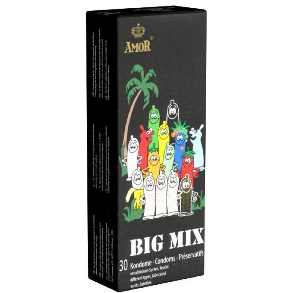 Das Amor „Big Mix“ Kondomset bietet eine spannende Vielfalt für ein abwechslungsreiches Liebesleben. In der Packung erwarten Sie 30 Kondome, die sich in Standard-, strukturierte, aromatisierte und farbige Вариантыn unterteilen und somit für jeden Moment die passende Wahl bieten. 12 Standardkondome überzeugen durch die bewährte Kombination aus hochwertigem Naturkautschuklatex und einer angenehmen Passform mit einer nominalen Breite von 52–54 mm. Diese klassischen Kondome sind ideal für den täglichen Gebrauch und bieten zuverlässigen Schutz. Für zusätzliche Stimulation enthält das Set 6 strukturierte Kondome mit Rippen und Noppen, die beide Partner durch eine intensivere Empfindung bereichern. Darüber hinaus sorgen 6 aromatisierte Kondome in fruchtigen Geschmacksrichtungen wie Erdbeere, Banane und Spearmint für eine frische Note und bringen besonderen Spaß in die intimen Momente. Abgerundet wird das Set durch 6 farbige Kondome in Rot, Grün, Gelb und Blau, die eine spielerische Komponente hinzufügen und optisch für Abwechslung sorgen. Jedes Kondom ist mit Silikonöl befeuchtet, um eine angenehme Gleitfähigkeit sicherzustellen, und verfügt über ein praktisches Reservoir für zusätzliche Sicherheit. Die Wanddicke liegt zwischen 0,06 und 0,07 mm und bietet ein komfortables Gefühl, ohne den Schutz zu beeinträchtigen. Amor, seit über 50 Jahren als Experte für Qualität und Sicherheit bekannt, stellt sicher, dass jedes Kondom höchsten Standards entspricht und für ein sicheres sowie aufregendes Erlebnis sorgt. Genießen Sie die Vielfalt und Verlässlichkeit der Amor Kondome und erleben Sie Momente voller Leidenschaft und Sicherheit.