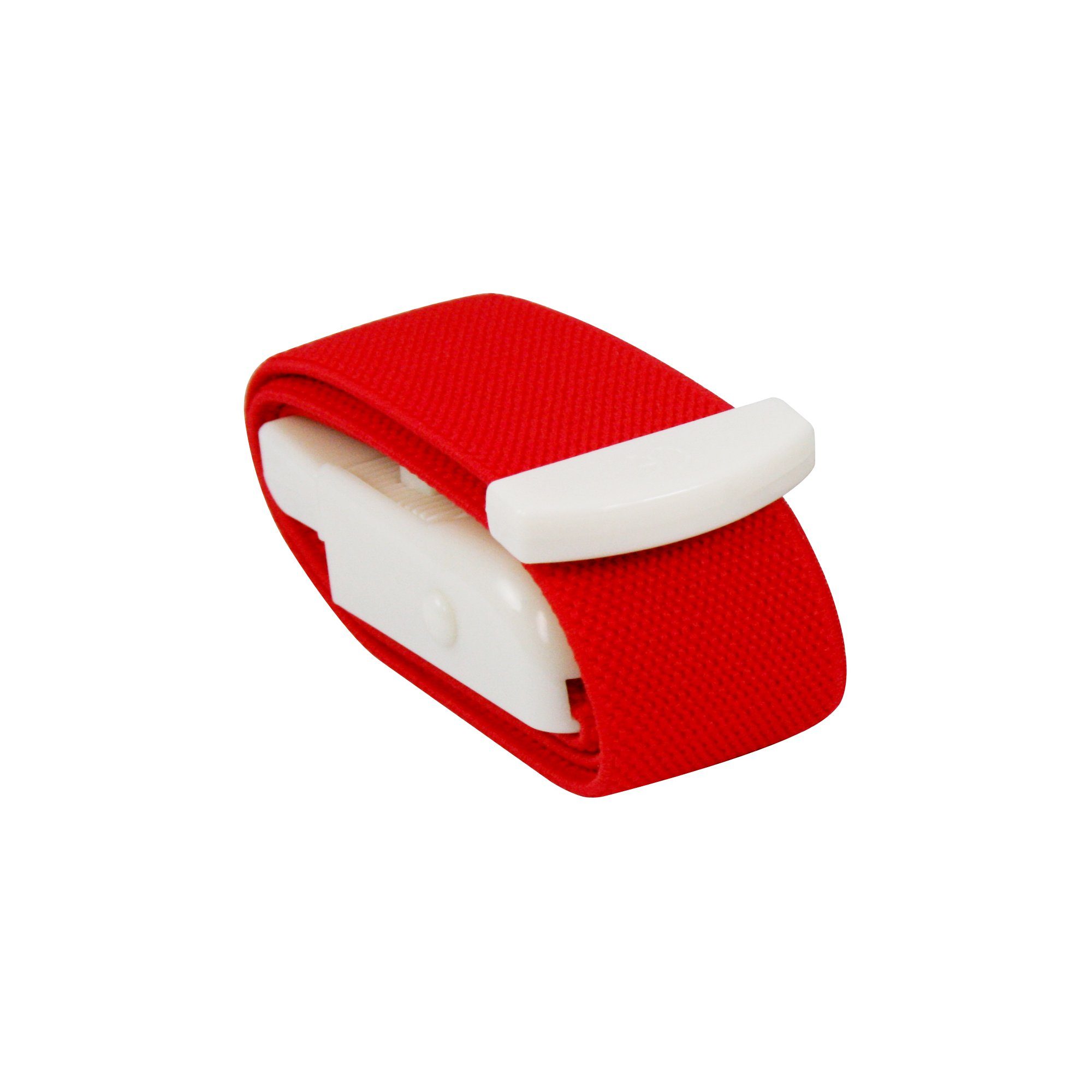 Venenstauer mit einer Bandlänge von ca. 45 cm zum Stauen von Venen bei der Blutentnahme. Der Venenstauer verfügt über einen Kunststoffverschluss mit praktischem Druckknopf, welcher eine einfache Einhandbedienung ermöglicht. Das Stauband ist in den 3 Farben verfügbar: Blau, Rot und Grün.