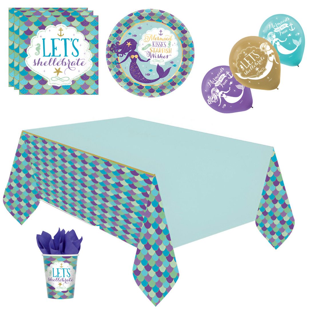 Tauchen Sie ein in die magische Unterwasserwelt mit diesem bezaubernden Meerjungfrau Partyset. Ideal für einen unvergesslichen Kindergeburtstag mit Meerjungfrauen-Motto! Zauberhaftes Meerjungfrau-Design: 8 Teller (23 cm) und 8 Becher (250 ml) mit wunderschönen Meerjungfrau-Motiven für eine magische Party. Farbige Tischdecke: Die passende Tischdecke (120 x 180 cm) ergänzt das Set und bringt das Thema perfekt zur Geltung. Passende Servietten: 16 Servietten (33 x 33 cm) runden das Partyset ab und sorgen für einheitliche Dekoration. Luftballons inklusive: 6 bunte Luftballons verstärken das Meerjungfrauen-Thema und bringen zusätzlichen Spaß. Hochwertige Materialien: Langlebig und robust, perfekt für eine lebhafte Feier mit kleinen Gästen. Dieses Meerjungfrau Deko Set verwandelt jede Geburtstagsfeier in eine bezaubernde Unterwasserparty, die kleine Meerjungfrauen lieben werden! Inhalt des Sets: 8 Teller (23 cm) 8 Becher (250 ml) 16 Servietten (33 x 33 cm) 1 Tischdecke (120 x 180 cm) 6 Luftballons