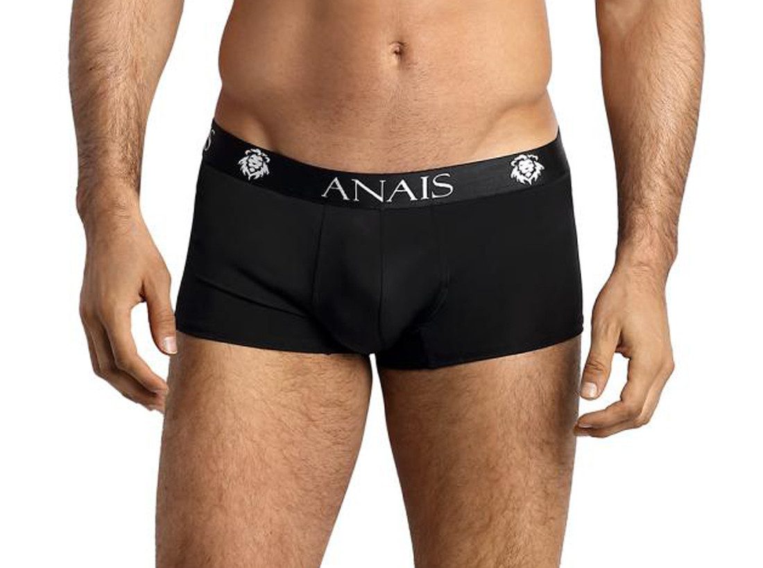 Schwarzer Herren Boxer Shorts, gefertigt aus leicht glänzendem, blickdichtem Stoff und breitem Gummibund.