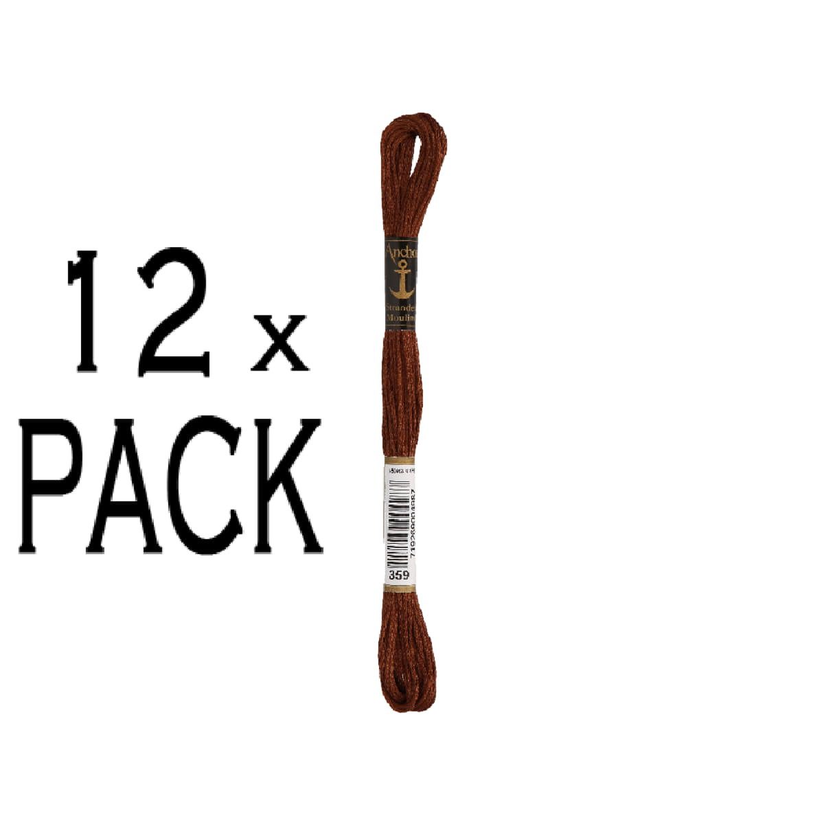 Kreativset 12x Anchor Sticktwist 8m, braun, Baumwolle, Farbe 359, 6-fädig, VPE