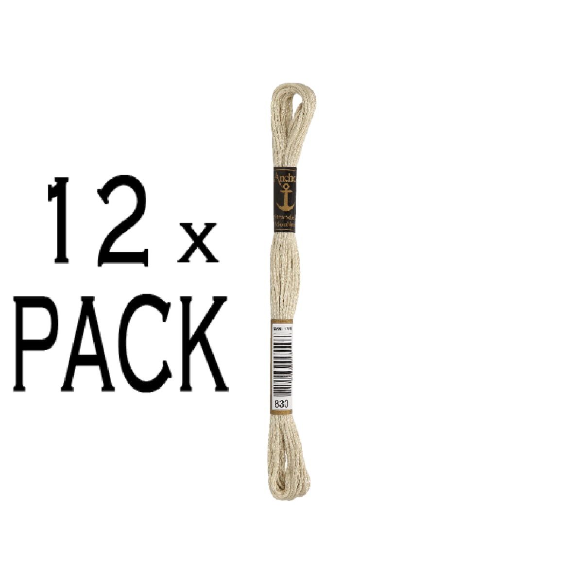 Kreativset 12x Anchor Sticktwist 8m, kies, Baumwolle, Farbe 830, 6-fädig, VPE
