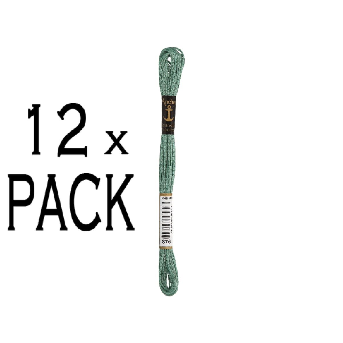 Kreativset 12x Anchor Sticktwist 8m, minze, Baumwolle, Farbe 876, 6-fädig, VPE