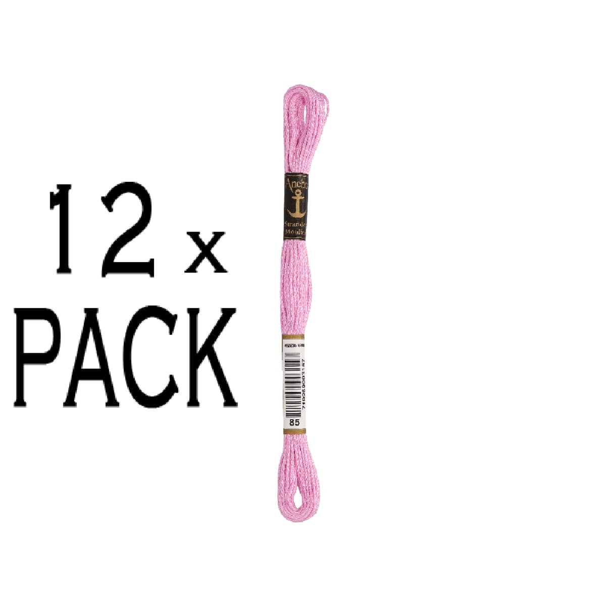 Kreativset 12x Anchor Sticktwist 8m, orchidee, Baumwolle, Farbe 85, 6-fädig, VPE