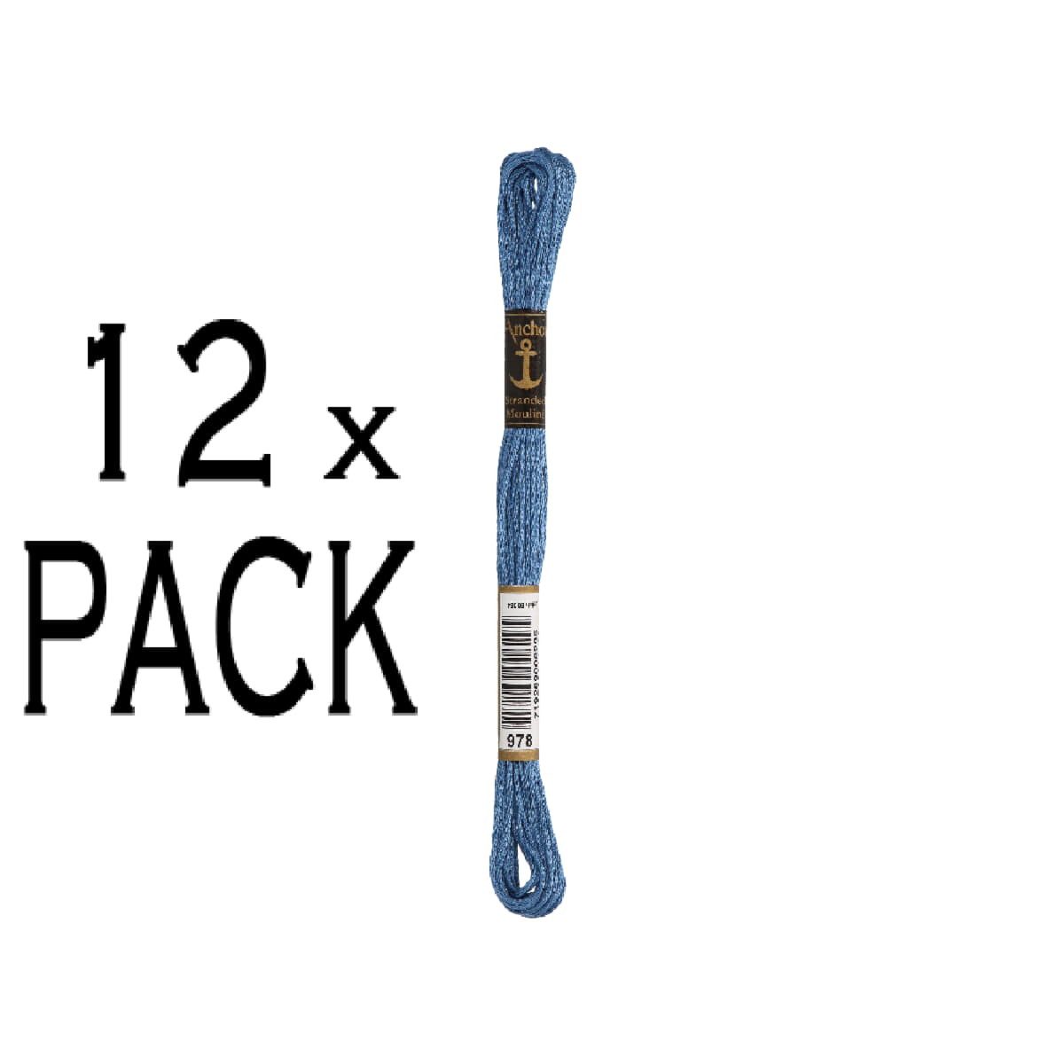 Kreativset 12x Anchor Sticktwist 8m, stahlblau, Baumwolle, Farbe 978, 6-fädig, VP