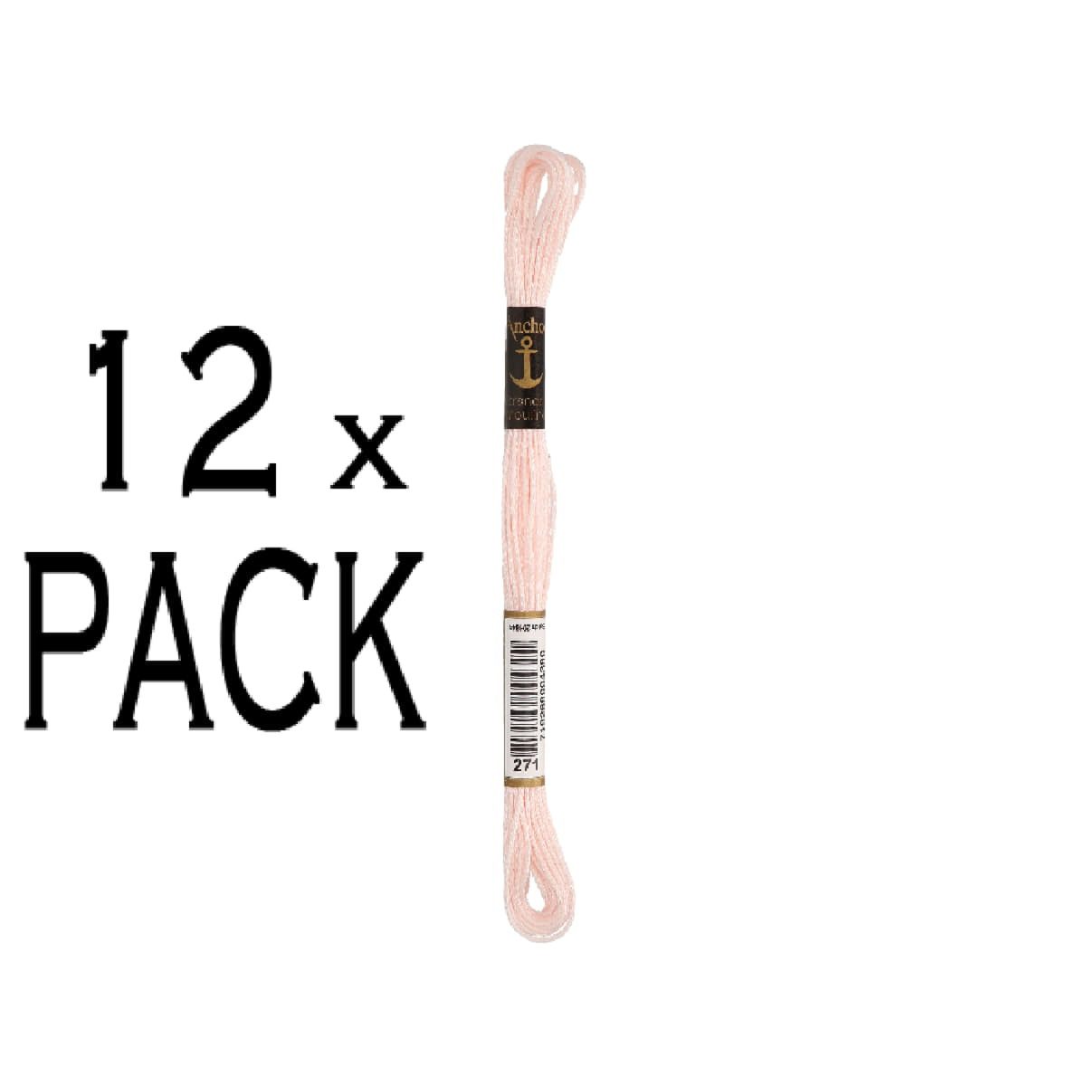 Kreativset 12x Anchor Sticktwist 8m, zartrosa, Baumwolle, Farbe 271, 6-fädig, VPE