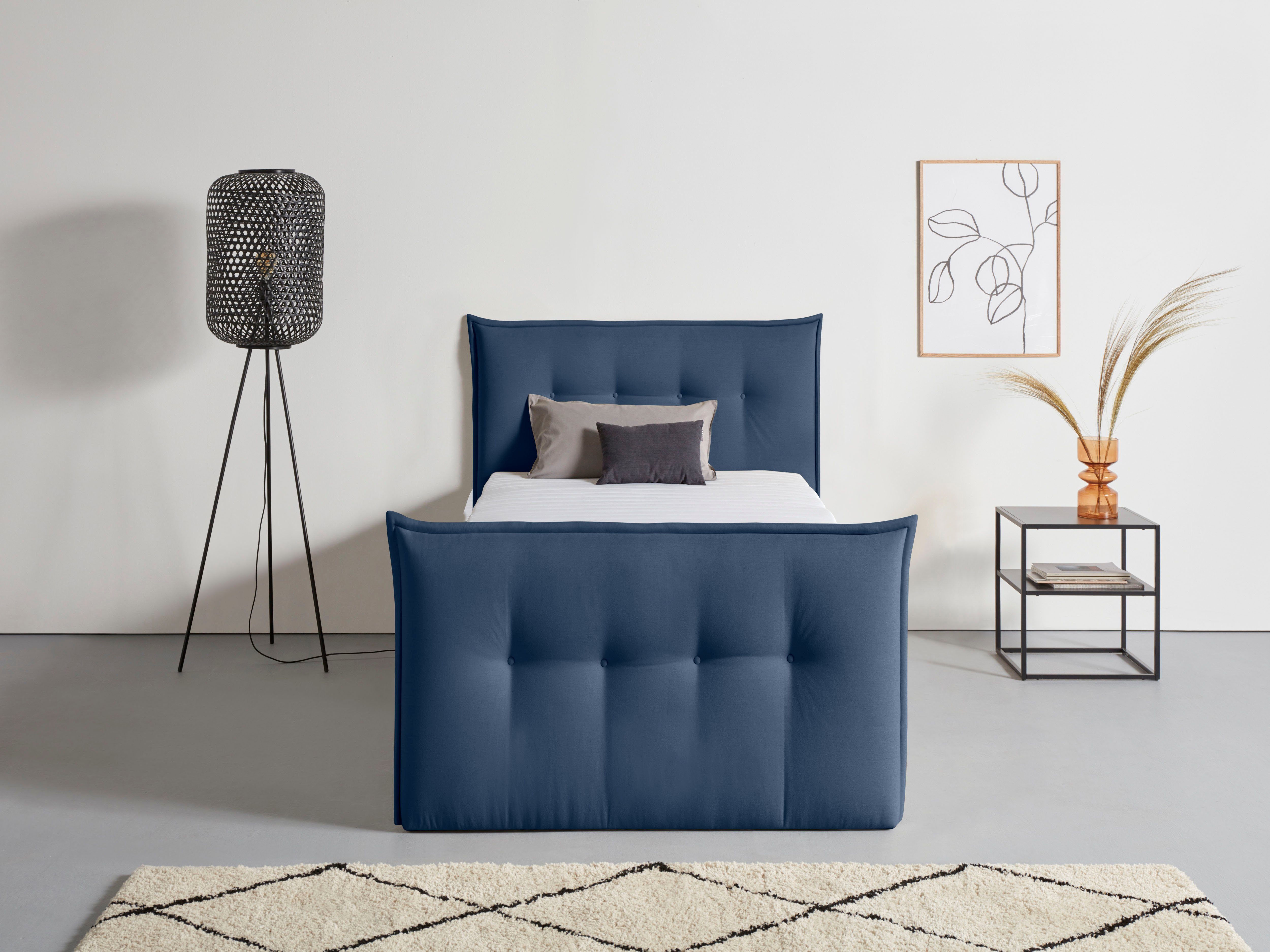 Wissenswertes | Boxspringbett mit Doppelfederung, Bettkasten und Fußteil, in 5 Farben, 4 Breiten, 2 Matratzenarten in 2 Härtegraden |