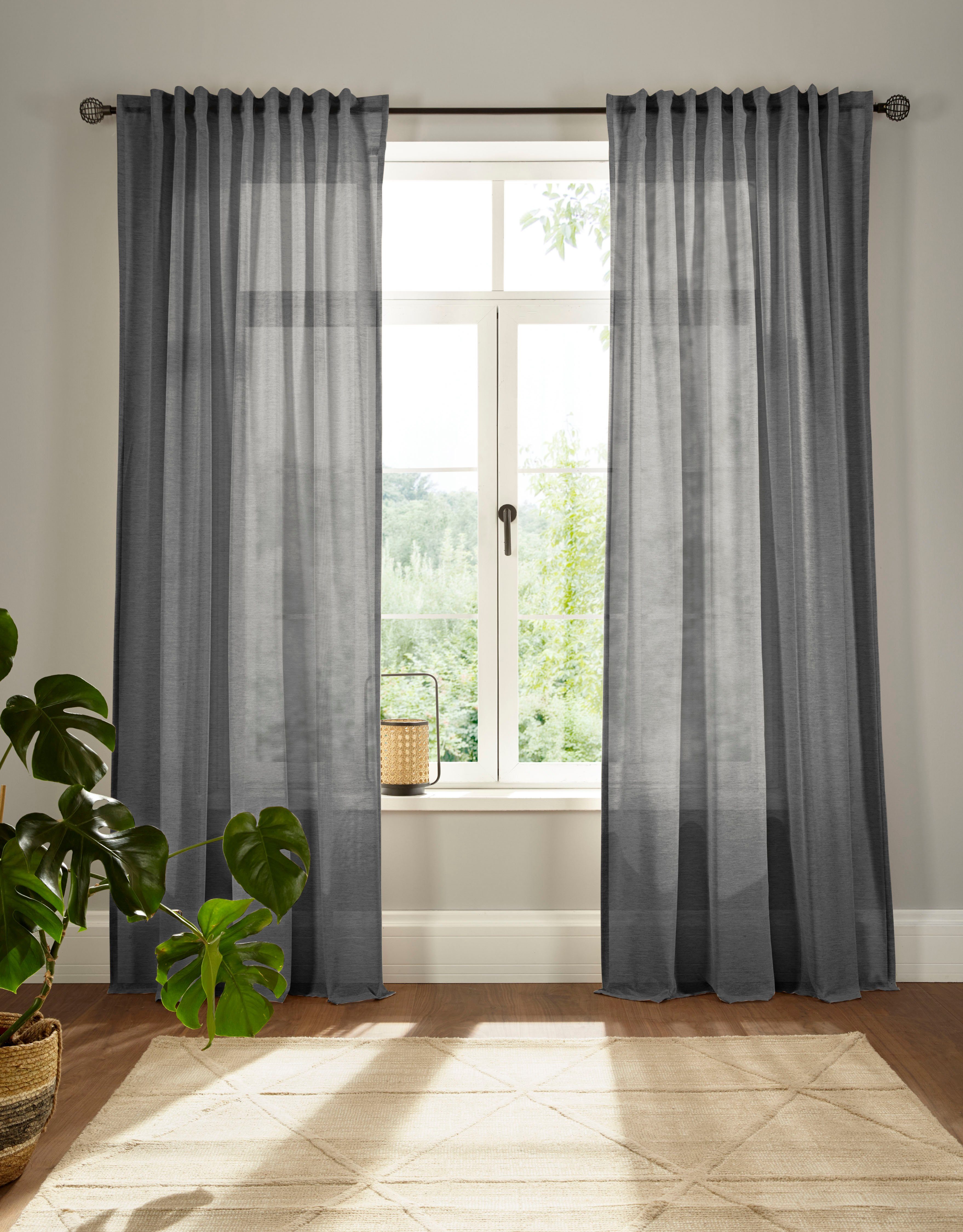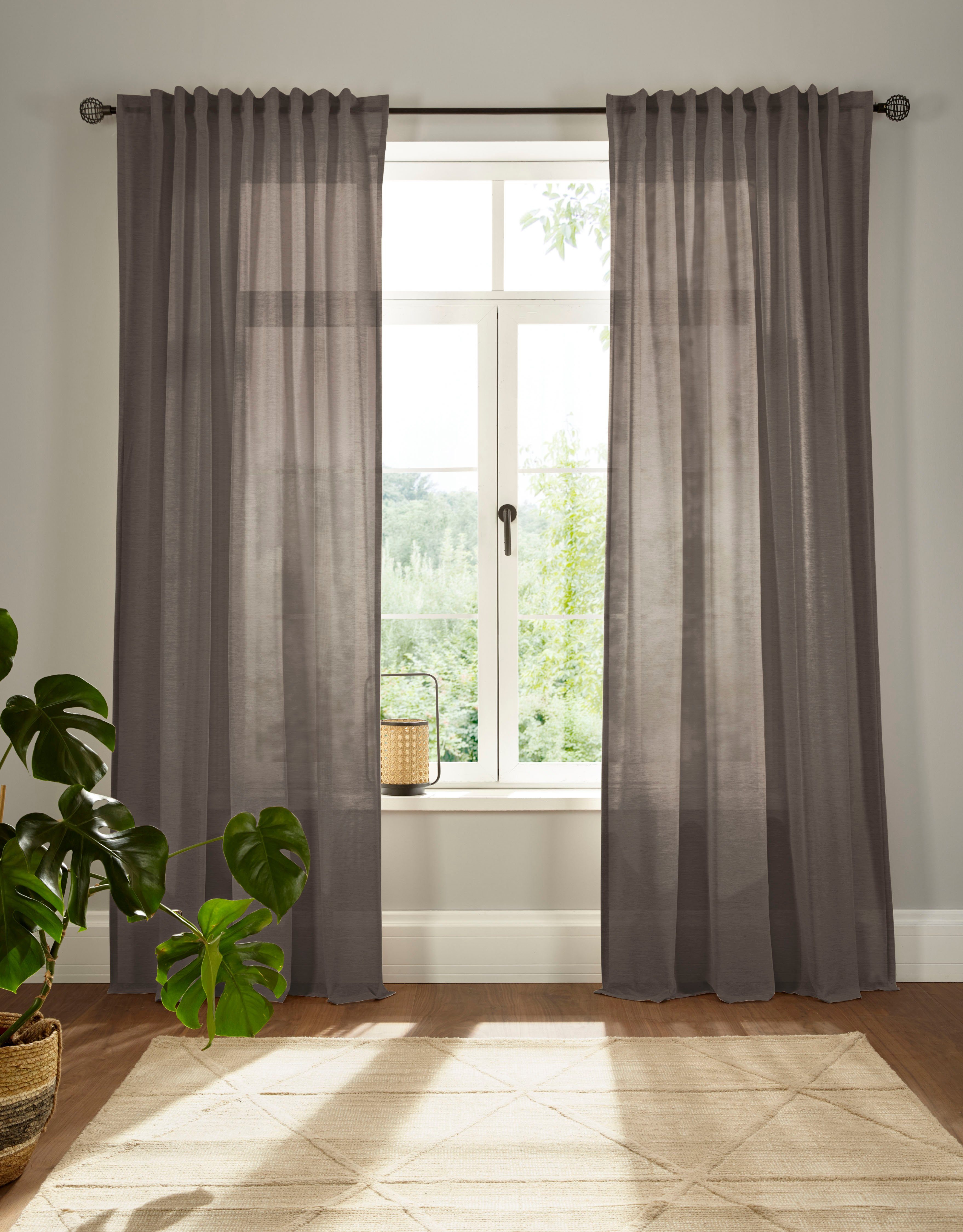 Hinweis Dekoration | Am Fenster fertig dekoriert, reduziert sich die Breite um ca. die Hälfte. Die angegebenen Maße sind Stoffmaße. |