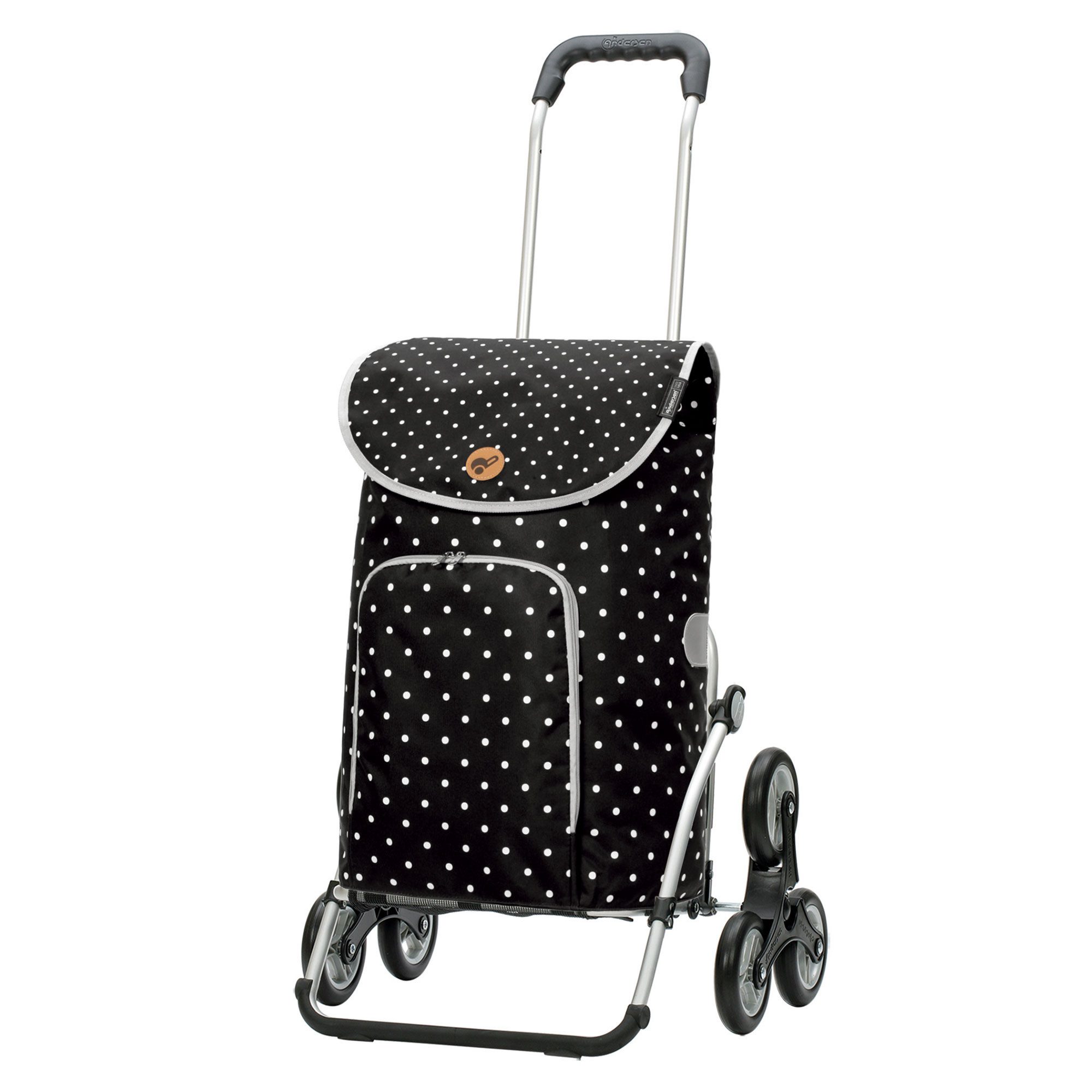 Eigenschaften | Gestell zusammenlegbar, 3 x 13 cm große Treppensteigerräder, große Tasche mit Vortasche und Kordelzug |