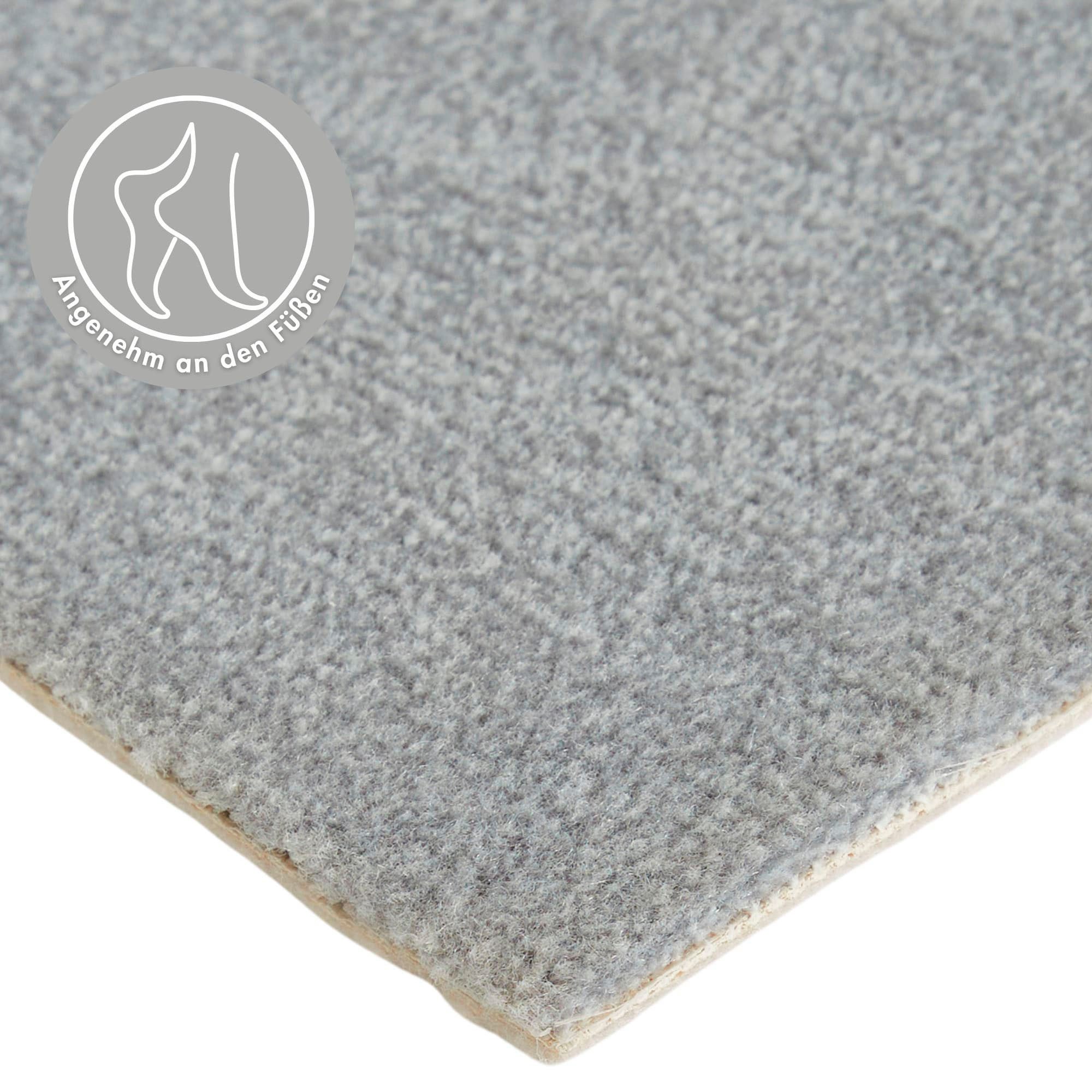 Dieser Teppichboden verbindet angenehmen Komfort mit zuverlässiger Funktionalität – ideal für alle, die nach einem Bodenbelag suchen, der sowohl im Alltag als auch bei intensiverer Nutzung überzeugt. Durch seine weiche Oberfläche und eine Florhöhe von etwa 4 mm bietet er ein angenehmes Laufgefühl, ohne dabei zu hoch aufzutragen. Die Gesamthöhe von ca. 7,5 mm sorgt für eine ausgewogene Mischung aus Komfort und praktischer Handhabung, etwa bei Türen oder Möbeln. Der Teppichboden eignet sich hervorragend für Wohnbereiche wie das Wohnzimmer, Schlafzimmer oder Kinderzimmer, macht aber auch in Arbeitszimmern, Fluren und Eingangsbereichen eine gute Figur. Die Farben bleiben lange frisch, auch wenn der Raum viel Sonnenlicht abbekommt. Zudem ist der Teppichboden für den Einsatz mit Stuhlrollen geeignet – eine praktische Eigenschaft besonders im Arbeitszimmer oder Homeoffice. Er lässt sich gut zuschneiden, leicht verlegen und liegt sauber an. Ein leichter Geruch kann Anfangs wahrgenommen werden, allerdings verschwindet dieser rasch durch regelmäßiges Lüften. In der täglichen Pflege zeigt sich der Teppichboden besonders alltagstauglich: Regelmäßiges Saugen reicht aus, um ihn sauber zu halten – auch die Reinigung mit einem Staubsaugerroboter ist problemlos möglich. Damit ist er besonders pflegeleicht, auch in Haushalten mit Kindern oder Haustieren. Ob Sie eine wohnliche Atmosphäre im Wohnzimmer schaffen, dem Flur mehr Wärme verleihen oder einem Büro mehr Ruhe und Komfort geben möchten – dieser Teppichboden passt sich vielen Einrichtungsstilen und Raumnutzungen flexibel an. Entdecken Sie jetzt diesen vielseitigen Bodenbelag – praktisch, komfortabel und leicht zu pflegen. Ideal für Ihr Zuhause oder kleinere gewerbliche Räume!