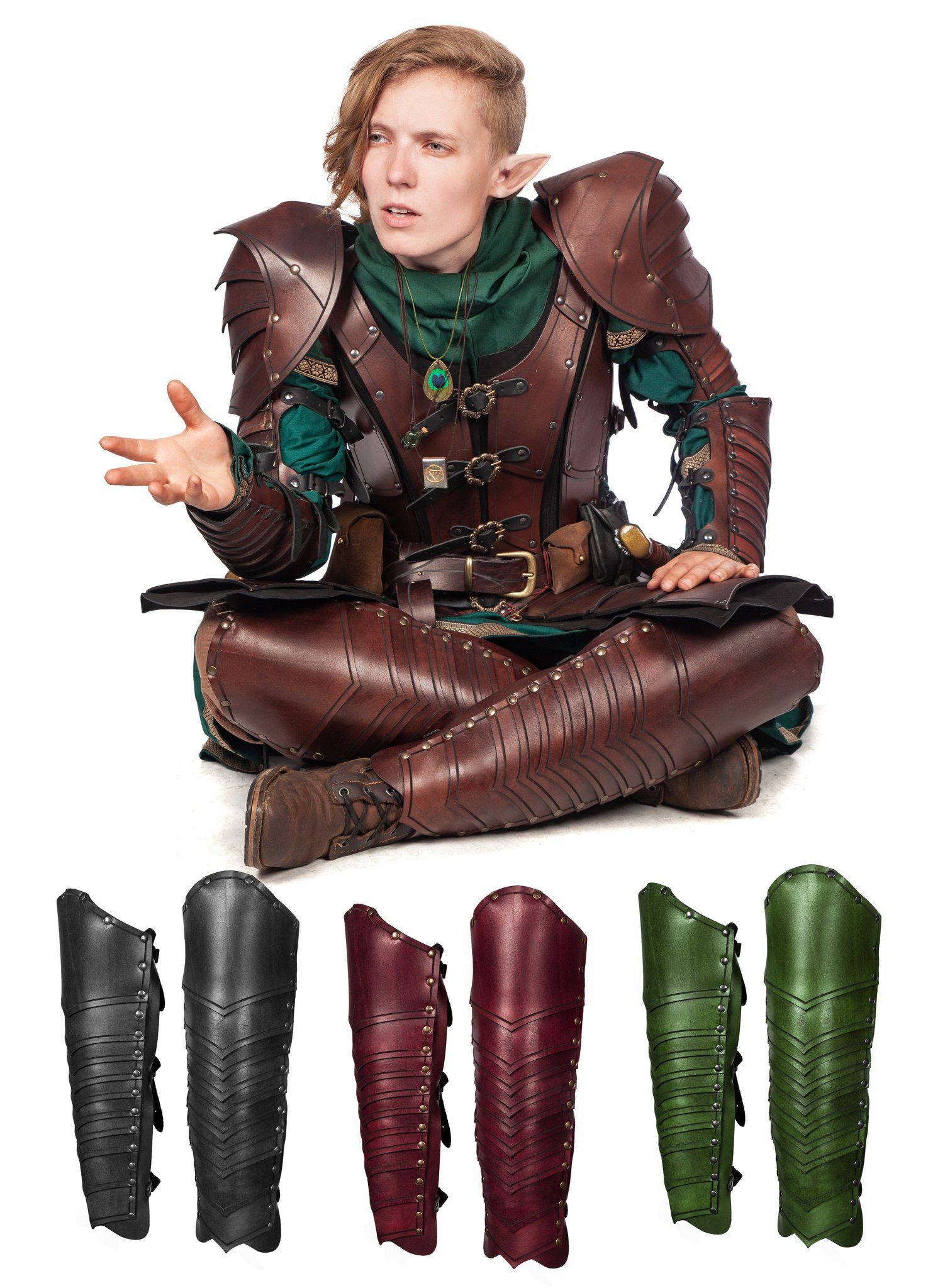Unsere Beinschienen - Drachenrücken sind definitiv kein reines Dekorüstungsteil. Die vernieteten Platten ergeben zusammen eine massive Lederschicht, die an vielen Stellen fast 1 cm dick ist. Zusätzlich ist zwischen den Segmenten und der Deckplatte ein Luftpolster, das Schläge extrem abfedert. Da kommt so schnell nichts durch. Zusammen mit den Armschienen - Drachenrücken und den Lederschultern - Drachenrücken bieten sie zuverlässigen Schutz in Larp-Kämpfen.