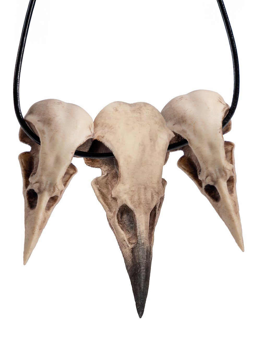 Ausstattung | - Krähen und Rabenschädel-Kette dreiteilig.- mit schwarzem Lederband (100 cm) |