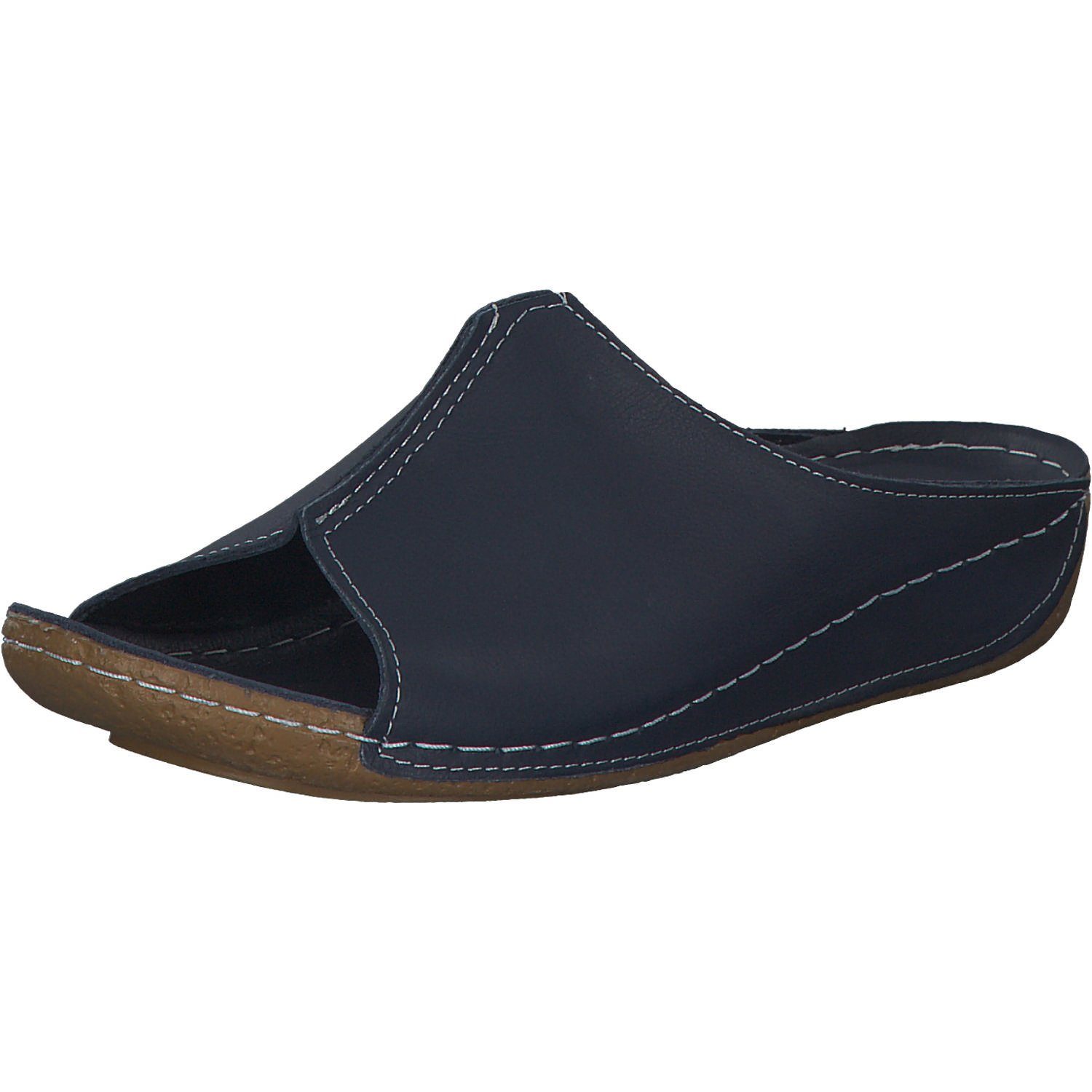 Die Andrea Conti Pantoletten für Damen aus schwarzem Glattleder bieten eine stilvolle und bequeme Option für den Sommer. Der offene Zehenbereich sorgt für eine luftige Passform, während die native Wulstnaht entlang des Spanns einen markanten, handwerklichen Akzent setzt. Das gepolsterte Lederfußbett und das angenehme Lederfutter tragen zu einem hohen Tragekomfort bei, der den ganzen Tag über anhält. Die flexible, rutschfeste Laufsohle gewährleistet sicheren Halt auf unterschiedlichen Untergründen. Diese Pantoletten sind ideal für entspannte, sommerliche Outfits und bieten sowohl Komfort als auch modischen Stil.