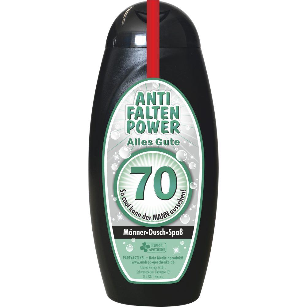 Spaß Duschgel zum 70. Geburtstag für Männer | Humorvolles Geschenk aus der Humorapotheke | Anti-Faltenpower
