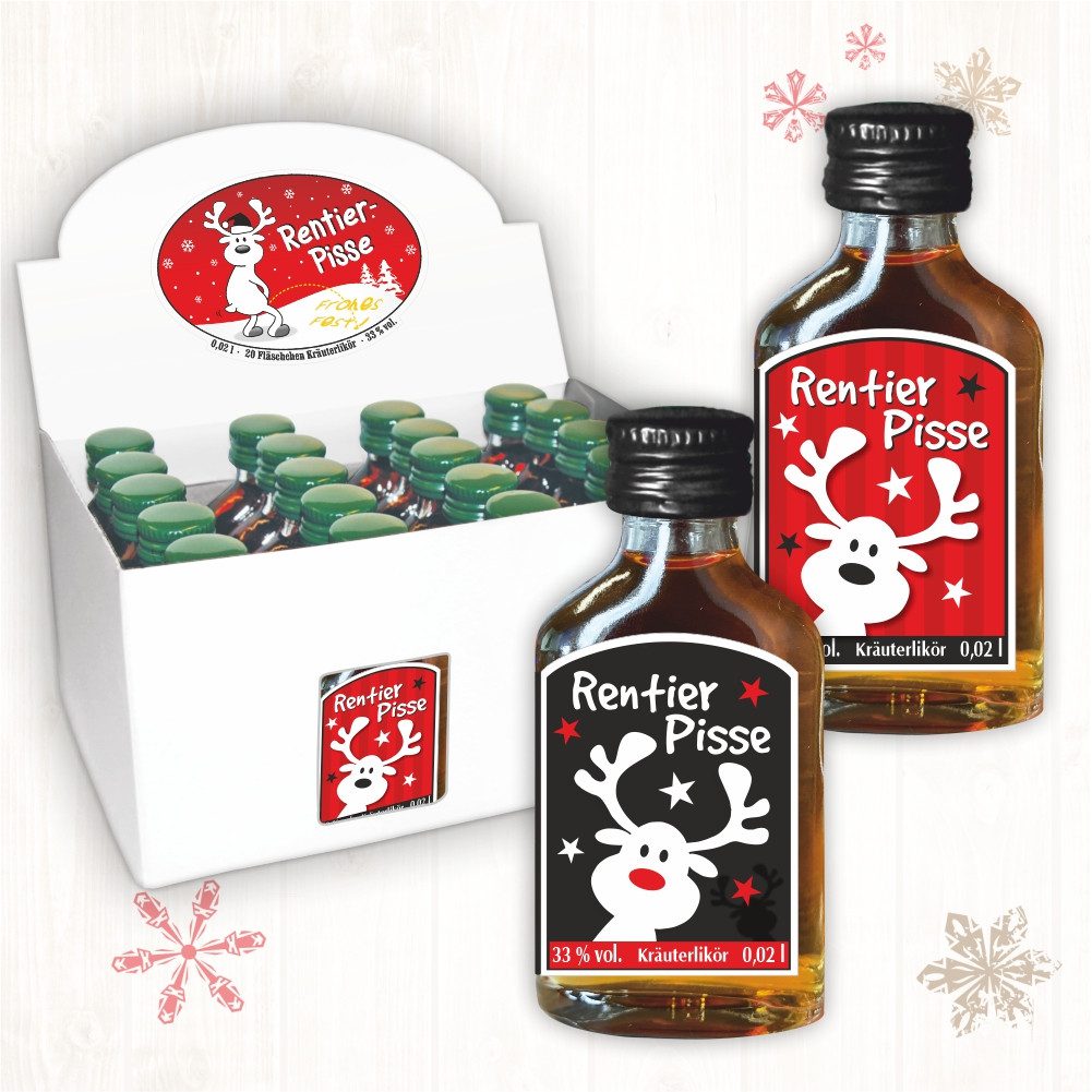 20er Box Kräuterlikör Display - Rentierpisse - zu Weihnachten | 20 St kleine Schnäpse Spirituosen 2 cl 33% vol. alk. | Geschenke für Männer | Scherzartikel für Erwachsene