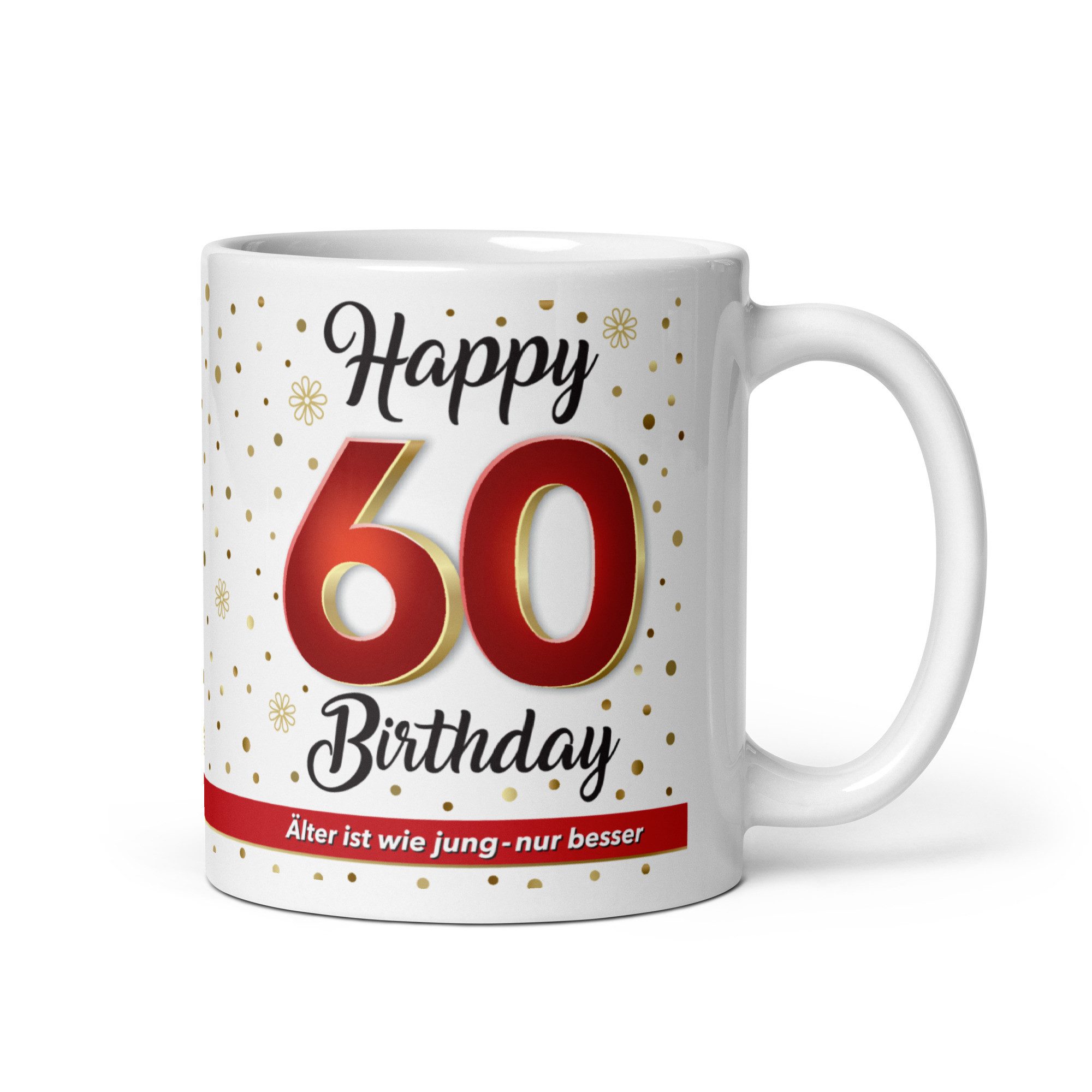 Lustige 60. Geburtstag Kaffeetasse – Witzige Geschenkidee – Hochwertiger Druck „60 Happy Birthday – Älter ist wie jung, nur besser“ – 300 ml Keramiktasse