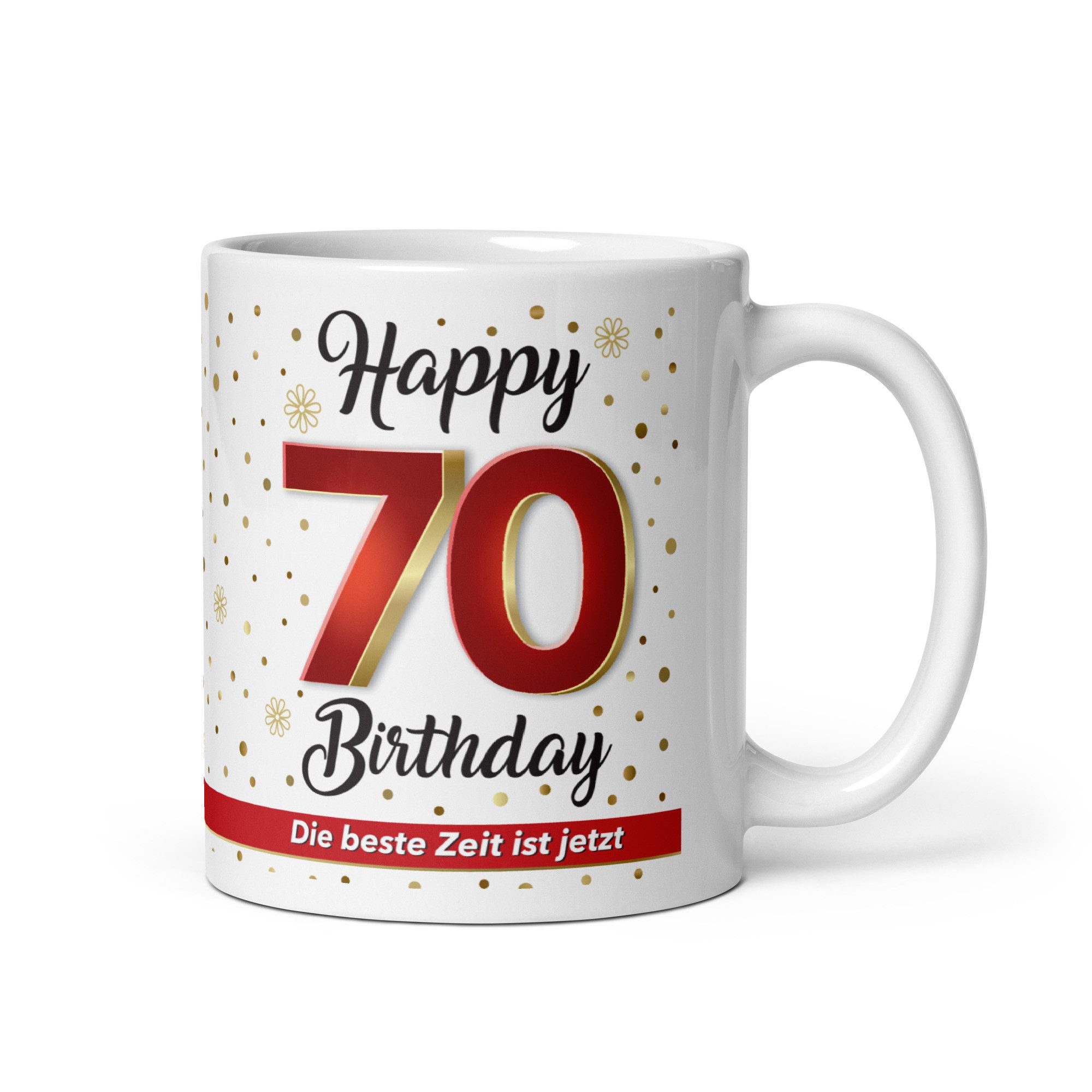 Lustige Tasse Kaffeetasse zum 70. Geburtstag für Männer & Frauen – Witzige Geschenkidee für Oma, Opa, Mama, Papa – Hochwertiger Druck „70 Happy Birthday – Die beste Zeit ist jetzt“ – 300 ml Keramiktasse ☕