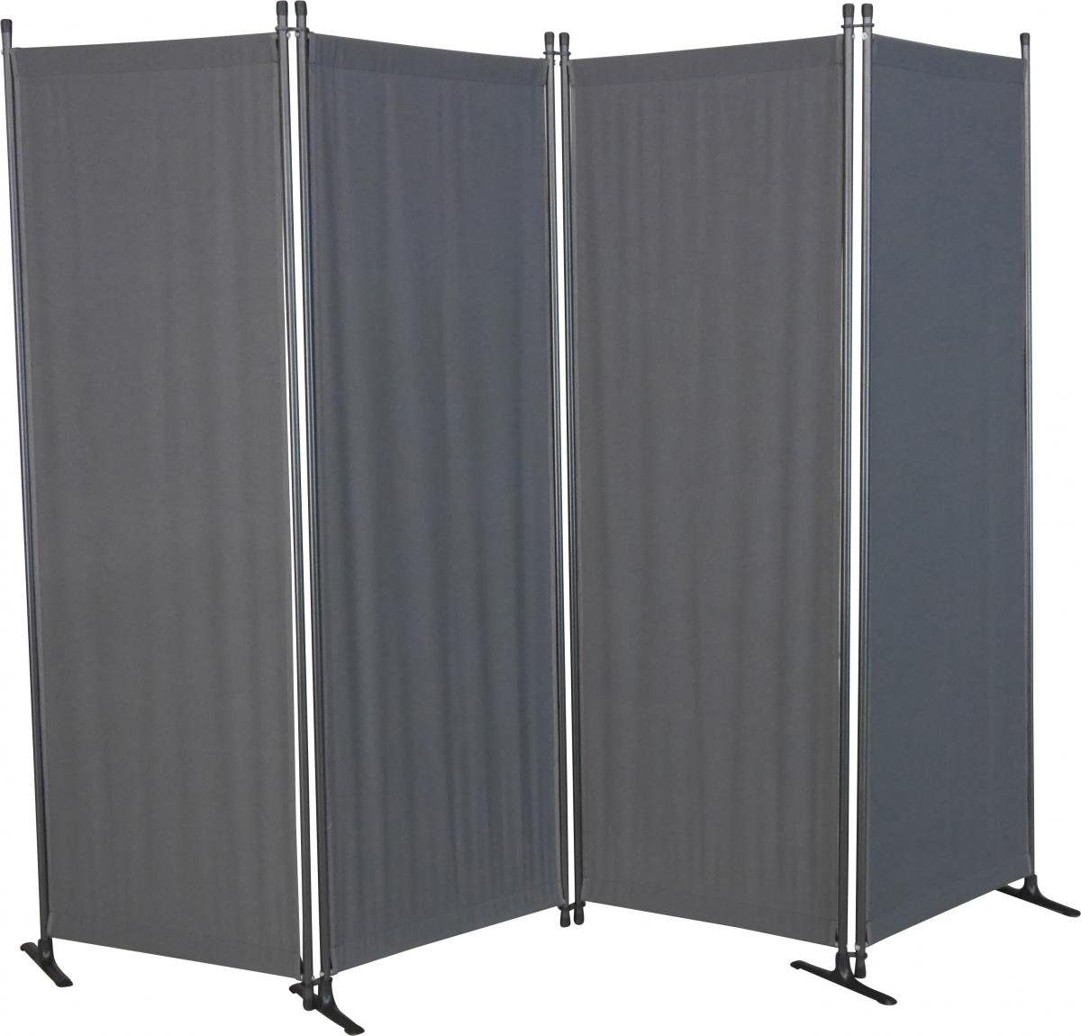 Der 4-teilige Paravent mit dunkelgrauem Bezugstoff ist der ideale Sichtschutz für den Innen- und Außenbereich. Die einzelnen Elemente können miteinander verbunden und beliebig erweitert werden. Zusammengefaltet ist der Paravent besonders platzsparend.