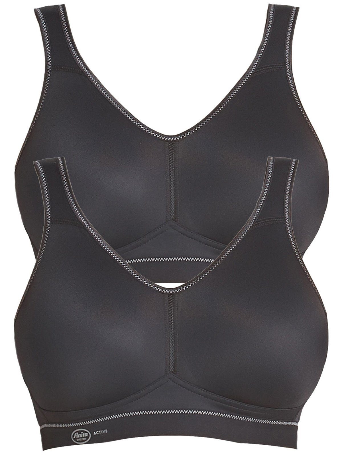 Sport BH von der Marke Anita aus der Serie light & firm. Besondere Merkmale des Artikels sind 2er Sparpack, nahtlos vorgeformte Cups, innen doppelt unterlegt, flaches Unterbrustband, elastische Komfortträger und Häkchenverschluss im Rücken. Anita steht für funktionelle und ästhetische Dessous und Bademode auf höchstem Standard mit optimaler Passform für jede Figur. Anitas Ziel ist Unterwäsche zum Verlieben.