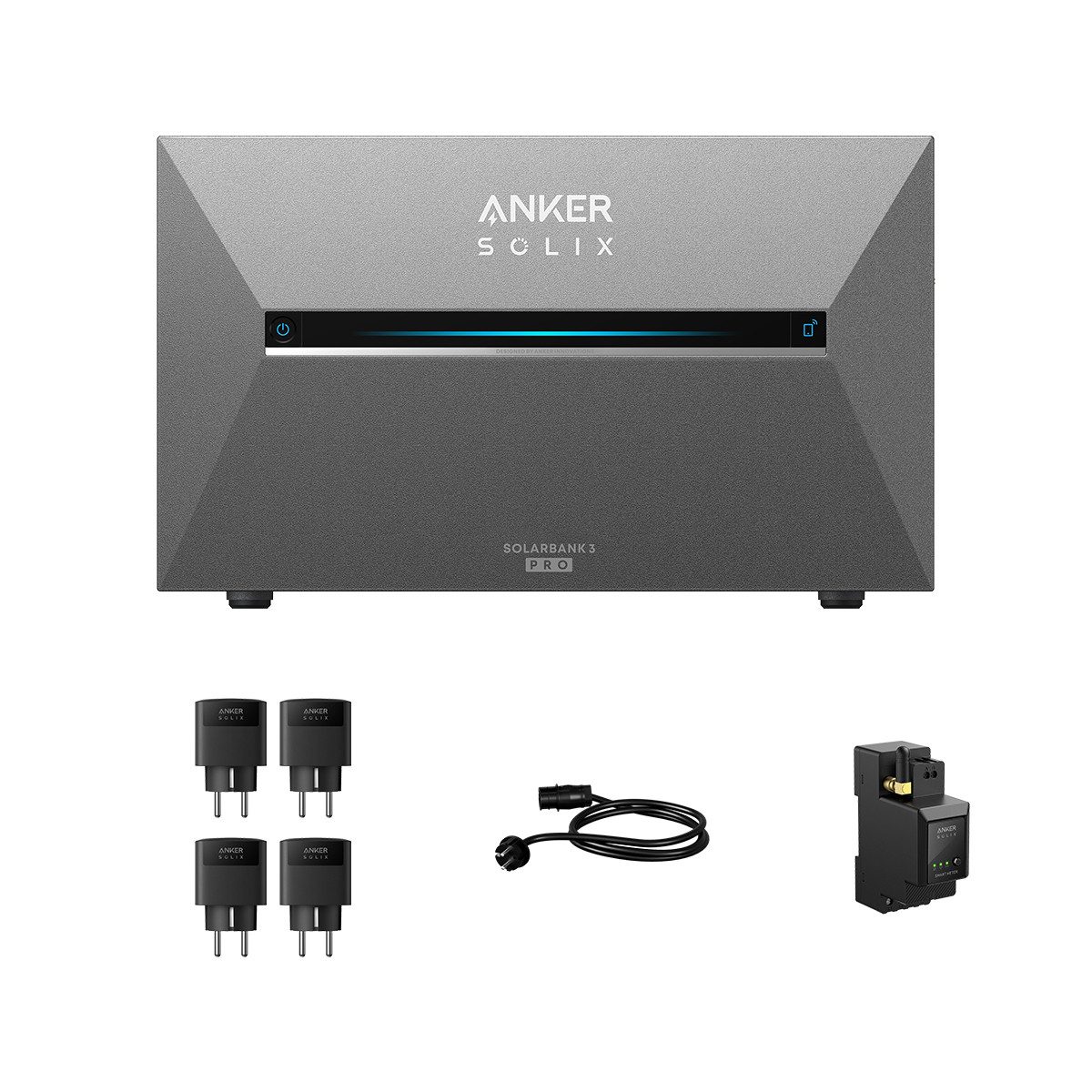 Lieferumfang: 1 x Anker SOLIX Solarbank 3 E2700 Pro, 1 x Smart Meter und 4x Anker Smart Plug, optional Anker SOLIX BP2700 Erweiterungsakku.