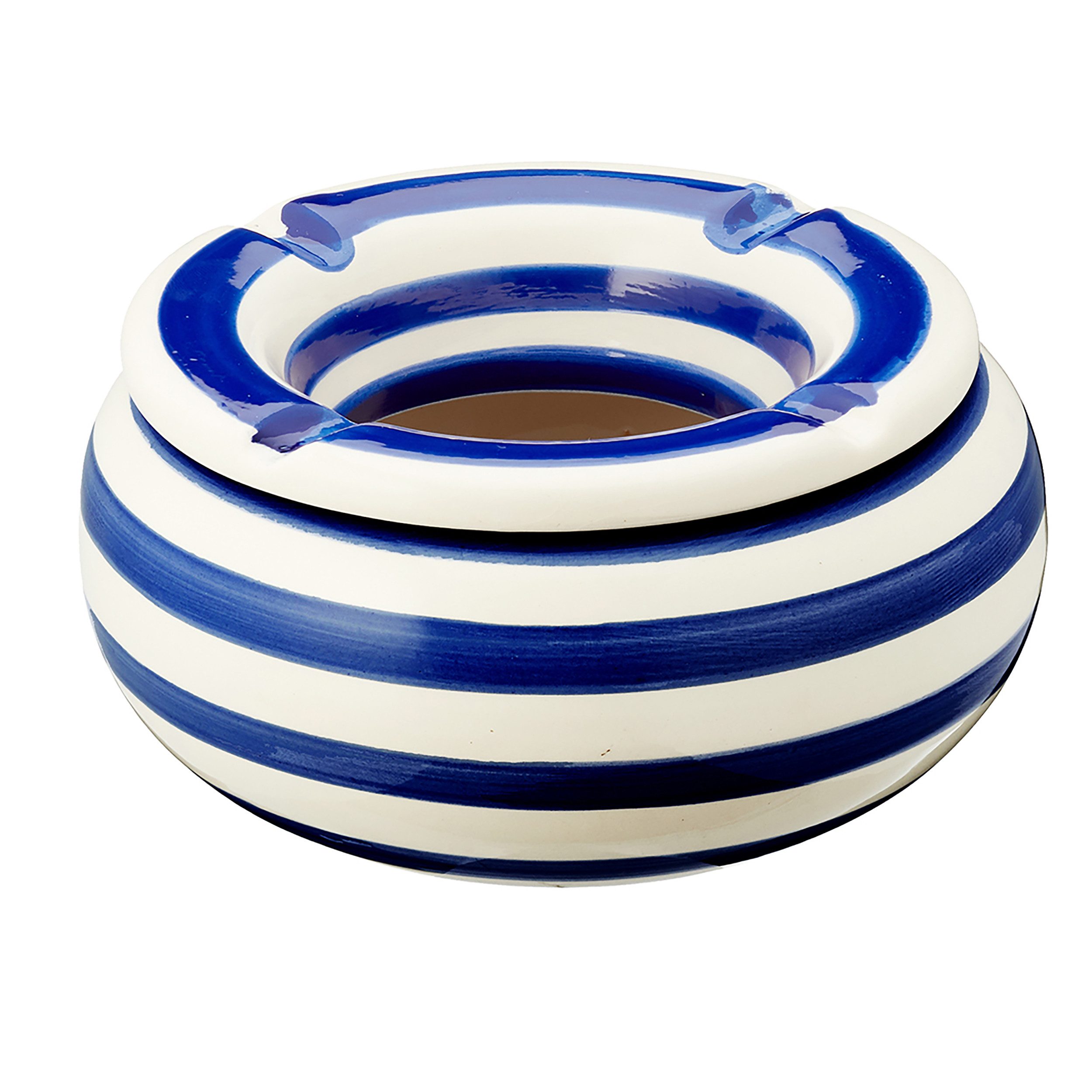 Der dekorative Sturmaschenbecher aus hochwertiger Dolomit-Keramik ist nicht nur äußerst robust, sondern auch witterungsbeständig. Dank seiner besonderen Eigenschaften eignet er sich perfekt für den Einsatz im Außenbereich, ohne dabei an Qualität einzubüßen. Durch die drei Einkehrbungen bietet der Windaschenbecher einen sicheren Platz zum Ablegen und Abaschen von Zigaretten. Die Mulde sorgt dafür, dass die Asche beim Abaschen nach innen fällt und somit sauber aufgefangen wird. Der abnehmbare Deckel ermöglicht zudem eine einfache und schnelle Entleerung des Aschenbehälters. Mit seinem bunten Design fügt sich dieser Tischaschenbecher harmonisch in jede Umgebung ein und setzt gleichzeitig einen stilvollen Akzent. Überzeugend in Qualität und Funktionalität überzeugt dieser Sturmmaschernbecher auf ganzer Linie - ein Must-Have für alle Raucher im Innen- sowie Außenbereich. Der Windaschenbecher eignet sich super für den Balkon, Terrasse oder auch für den Innenbereich. Material: Dolomit