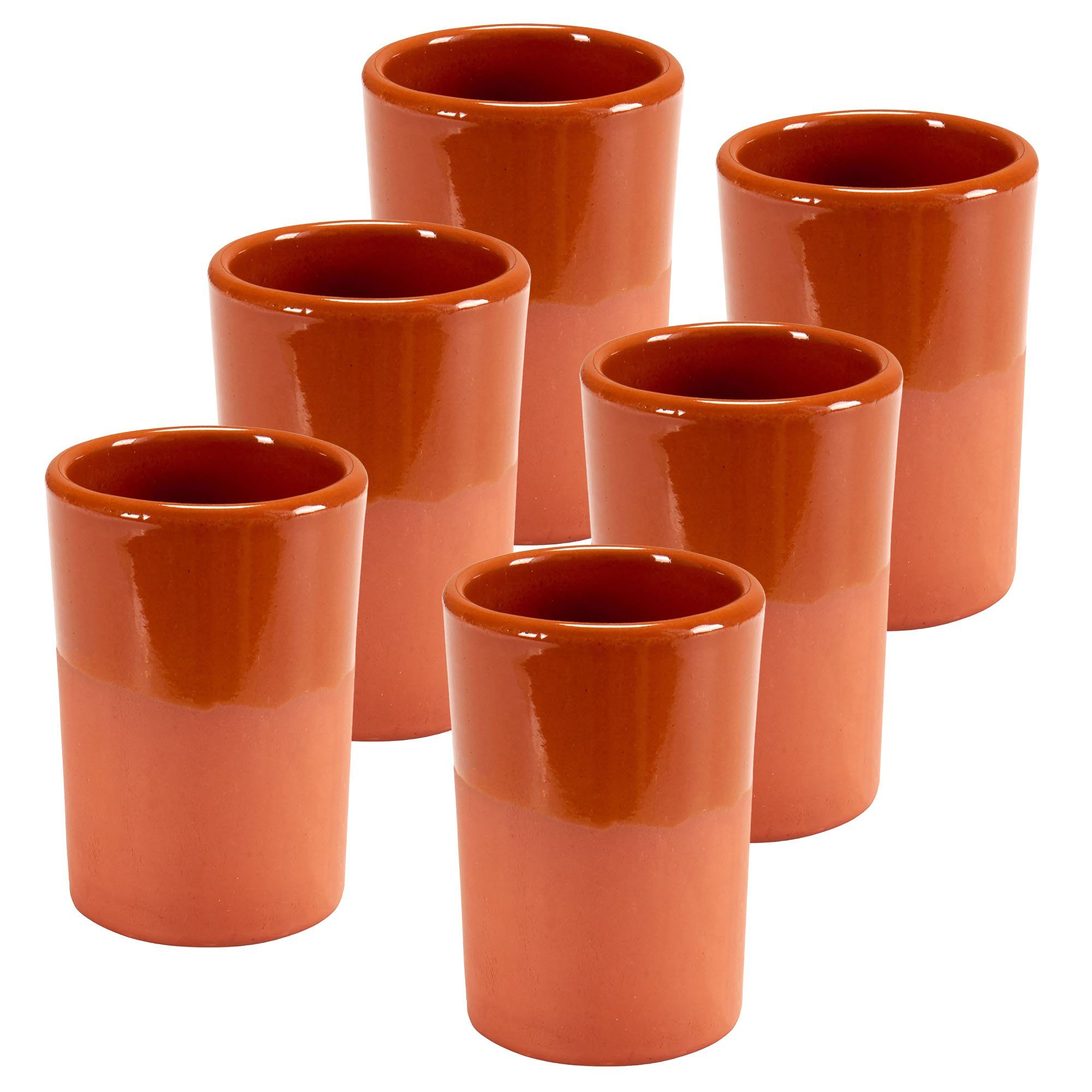 Weinbecher aus Ton als Highlight mit besonderem Flair. Die Tonbecher sind in Handarbeit endveredelt und gibt es in zwei Größen. Kleine Unebenheiten sowie Farbunterschiede sind keinesfalls Mängel sondern spiegeln die Einzigartigkeit dieses Produkt wieder – Jedes Stück ist ein einmaliges Unikat. Aufgrund der Ursprünglichkeit auch beliebt auf Mittelalterfesten, Jahrmärkten oder Wikingerfesten. Die Becher sind teilglasiert und können die Temperatur des Getränks sehr lange halten. Der ursprüngliche Tonkrug mit 1,0 Liter ist ebenfalls teilglasiert und hat die gleiche Beschaffenheit. Das Set aus Tonkrug und Becher beinhaltet 6 x Becher mit 250 ml. Füllmenge Becher: 250 ml - Maße Becher: H 10 cm / Ø 6,7 cm / Lieferumfang: 6 Stück Füllmenge Becher: 330 ml: Maße Becher: H 16 cm / Ø 7 cm / Lieferumfang: 6 Stück Füllmenge Krug: 1,0 Liter - Maße: 16 x 12 x 20 cm