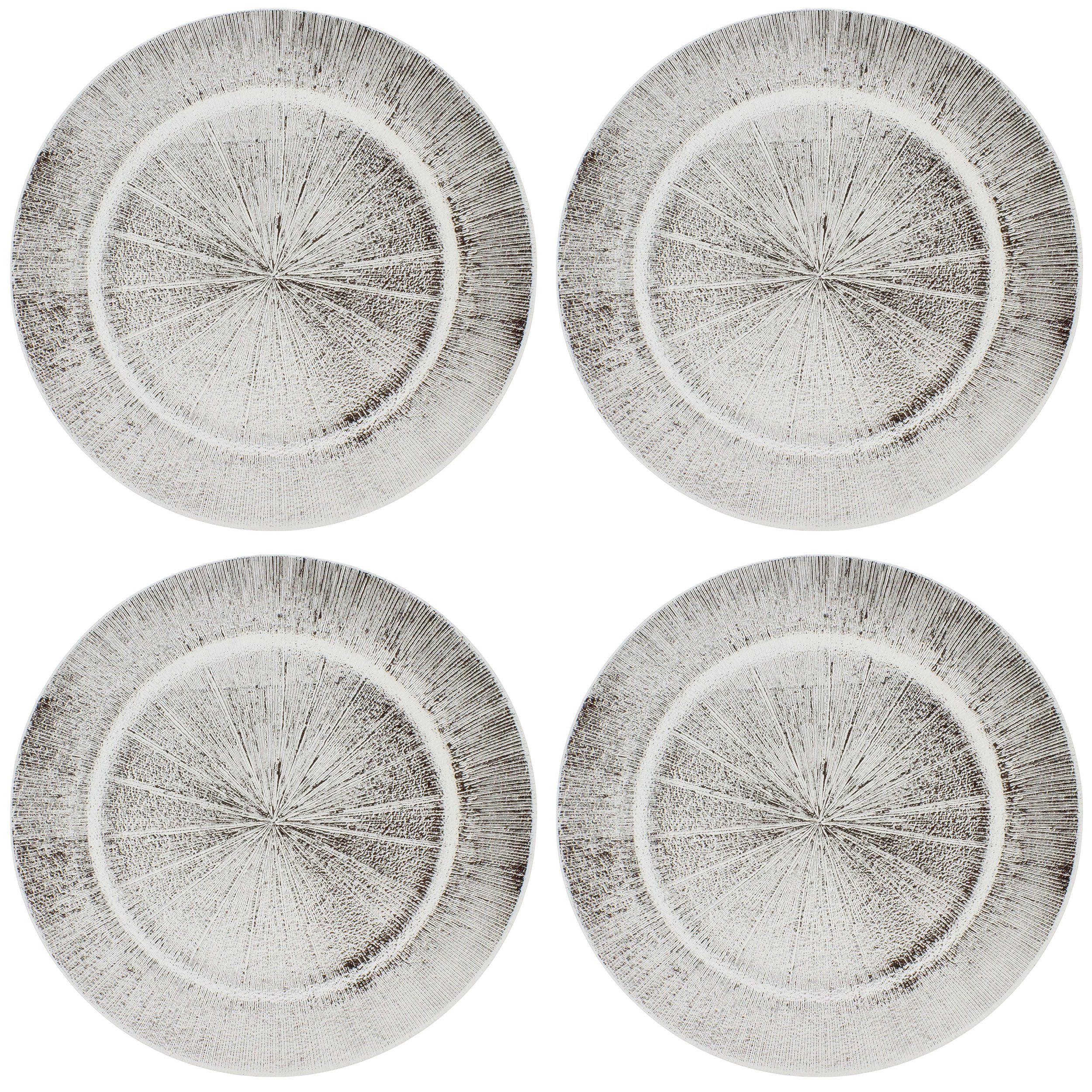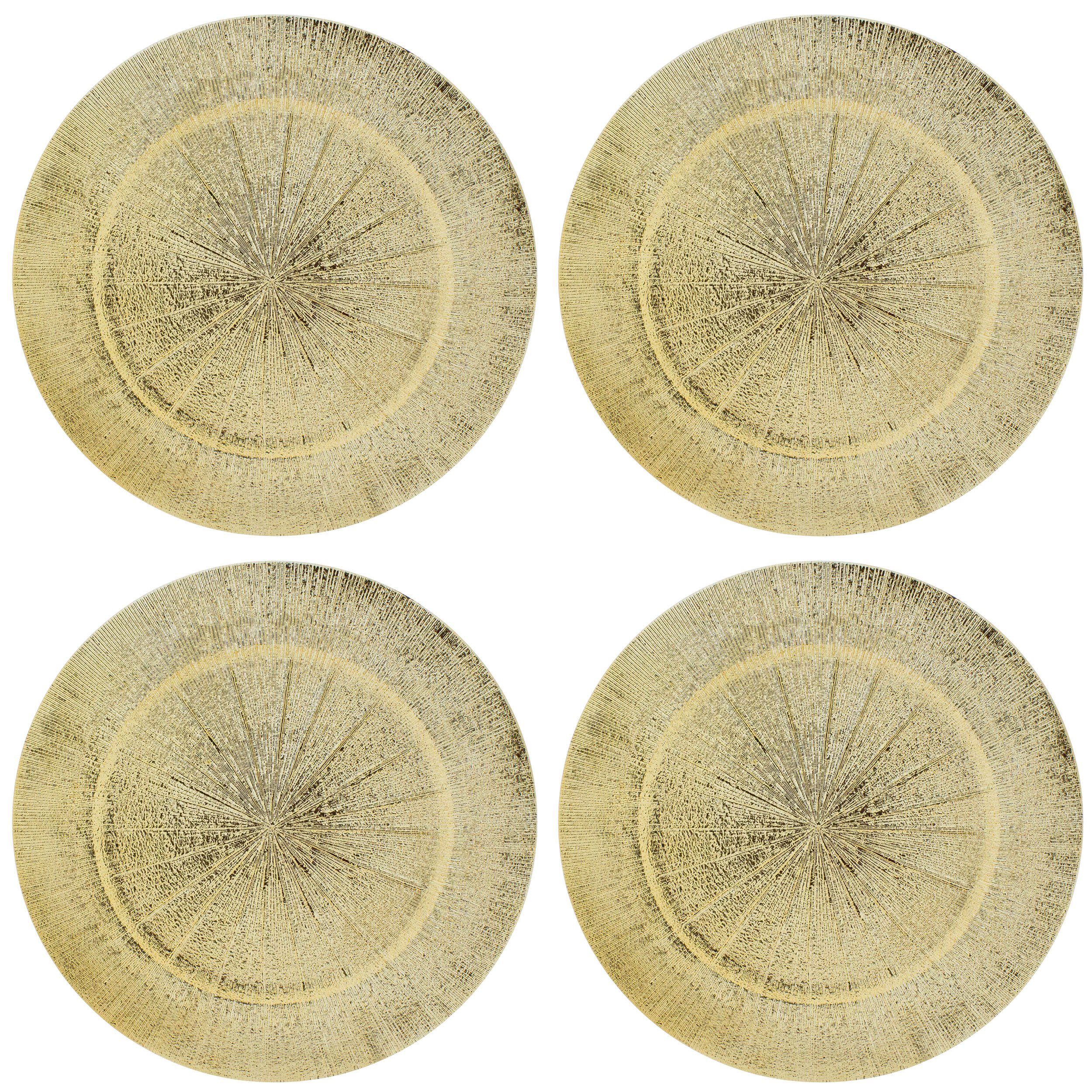 Unsere extravaganten Platzteller aus herrlich schimmerndem Polypropylen sind ein wahres Highlight für jeden festlich gedeckten Tisch. Mit ihrer edlen Verzierung in glitzernder Relieftechnik ziehen sie alle Blicke auf sich und verleihen jedem Essen eine besondere Note. Die klassische Ausführung und stilvolle Optik machen die Teller auch als Dekoration vielseitig einsetzbar. Wählen Sie aus drei aparten Farben Ihren persönlichen Favoriten und lassen Sie Ihren Tisch erstrahlen. Die hochwertige Verarbeitung sorgt für Langlebigkeit und eine elegante Atmosphäre bei jedem Anlass. Mit unseren Platztellern wird Ihr Zuhause zu einem Ort des Genusses und der Exklusivität. Setzen Sie auf Qualität und Stil - setzen Sie auf unsere Platzteller aus Polypropylen. Material: Polypropylen Maße: Ø 33 cm - Lieferumfang: 4 Stück